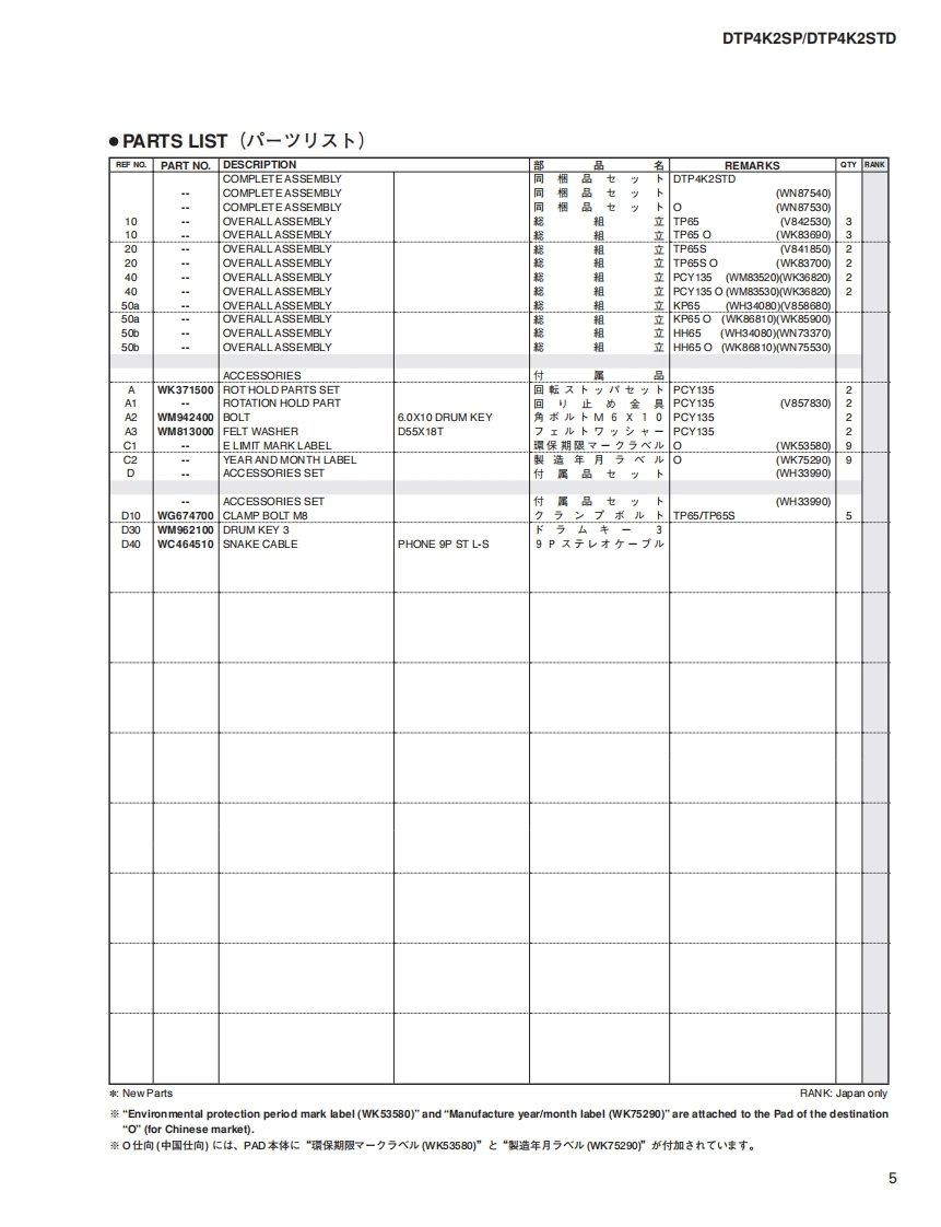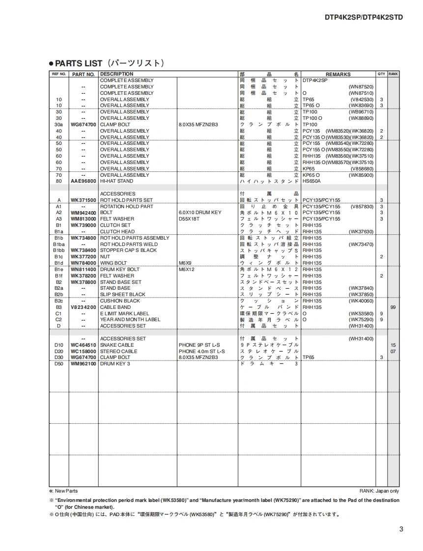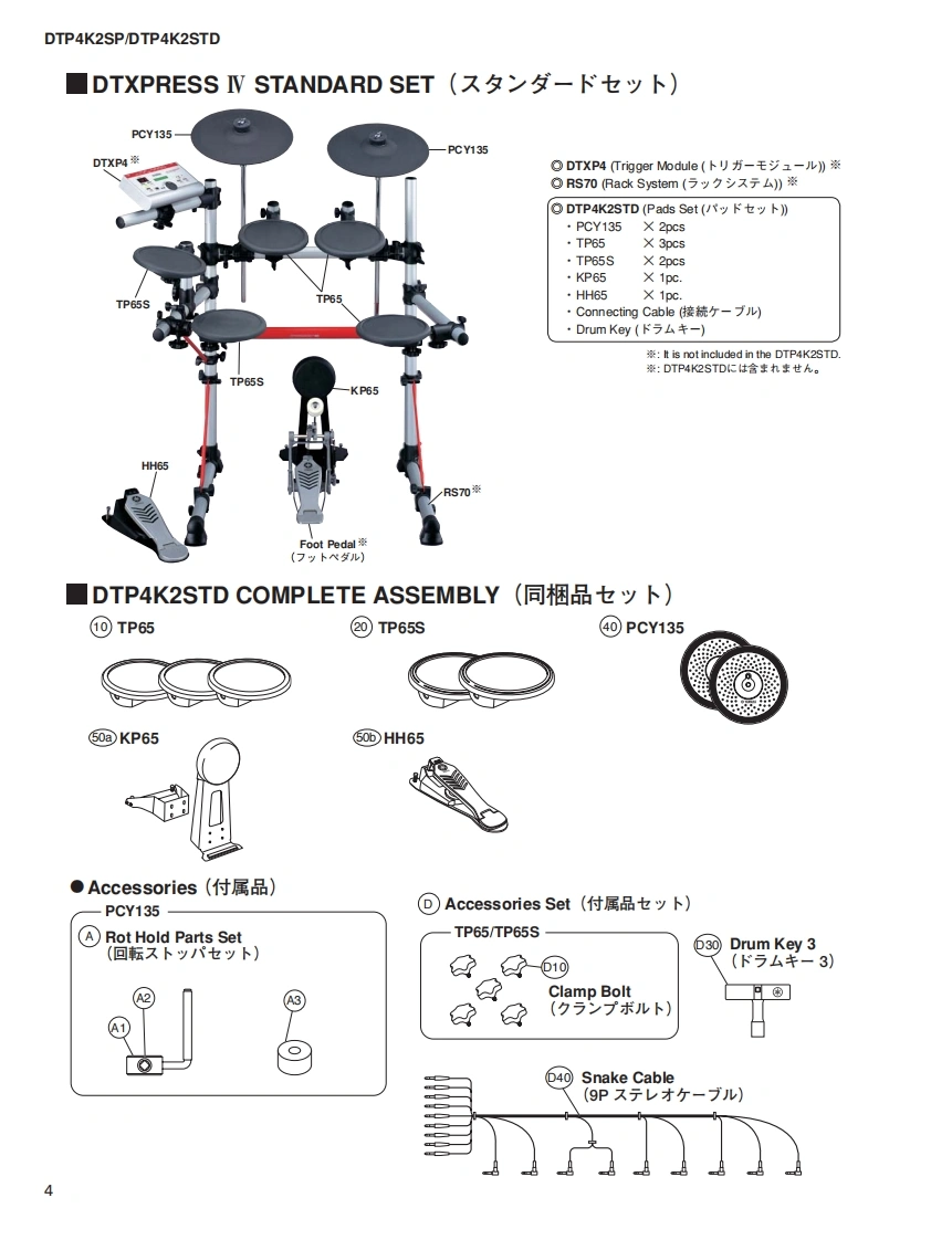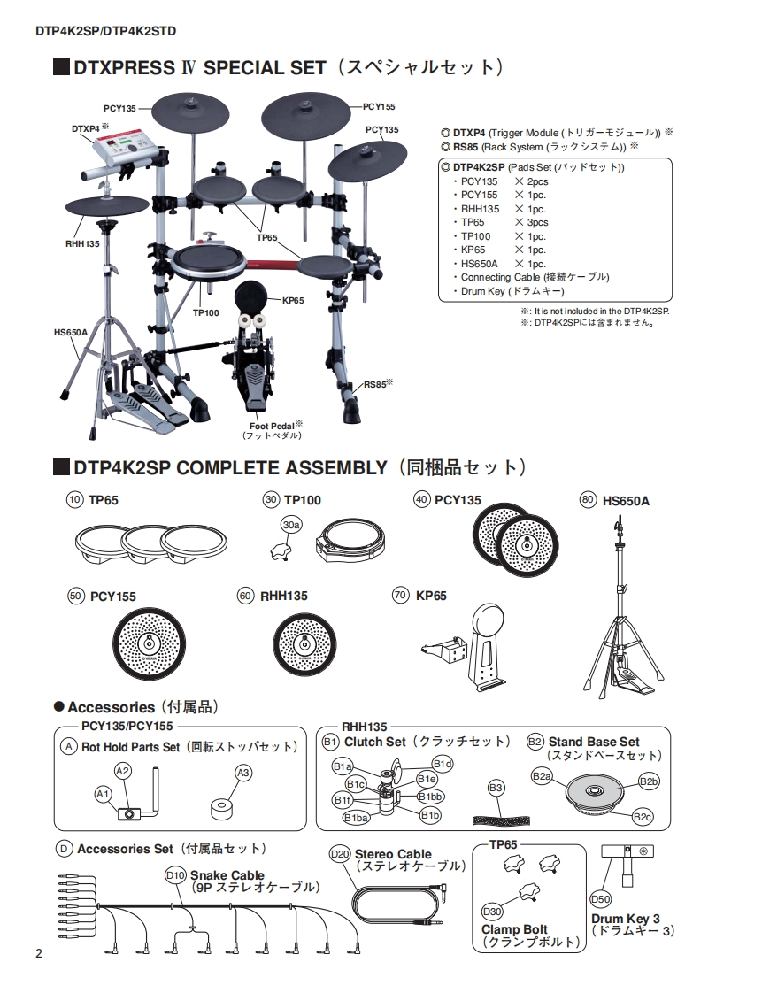 PADS SETDTP4K2SP/DTP4K2STDSERVICE MANUAL·PCY135·PCY155·RHH135·TP65·PCY135·PCY155·TP65S·TP100·KP65.HH65·RHH135·TP65TP65S.TP100.KP65·HH65You must have a PCY 135/PCY155 service manual (EDPCY135/PCY155)77夕-#-上夷施時仁体、PCY135/011894)before servicing the PCY135/PCY155.PCY155(ED011894D#-上マ二ュ了儿在2览<尤ě1。You must have a RHH135 service manual (ED 011895)be-RHH135)了7夕-女-上入夷施時上注、RHH135(EDere servieing the RHH135.0118950#-上又マ二ュ了儿左二宽<尤ě1。You must have a TP100 service manual (ED 011732)beforeTP100)了7夕一步一上入夷施時仁柱、TP100(EDervicing the TP100.0117320#-上又マ二ュ了儿左二霓<龙ě1。You must have a DTPK95 service manual (ED 011648)be-TP65/TP65S/KP65/HH65D了7夕-井-上入美施時{上住.fore servicing the TP65/TP65S/KP65/HH65.DTPK96(ED0116480#-ピ入マ二ュ了儿左z宽<龙ě1。■CONTENTS(目次)DTXPRESS IV SPECIAL SET(又ベャル乜y).2DTXPRESS IV STANDARD SET(Z夕>ダ-K乜y).4DTP4K2 SP COMPLETE ASSEMBLY(同梱品乜y卜).2DTP4K2 STD COMPLETE ASSEMBLY(同梱品乜y卜).4PARTS LIST(/バ-y又卜)3PARTS LIST(1バ-yy又卜).5ED011905YAMAHAHAMAMATSU,JAPANCopyright (c)Yamaha Corporation.All rights reserved.PDFM'08.05
