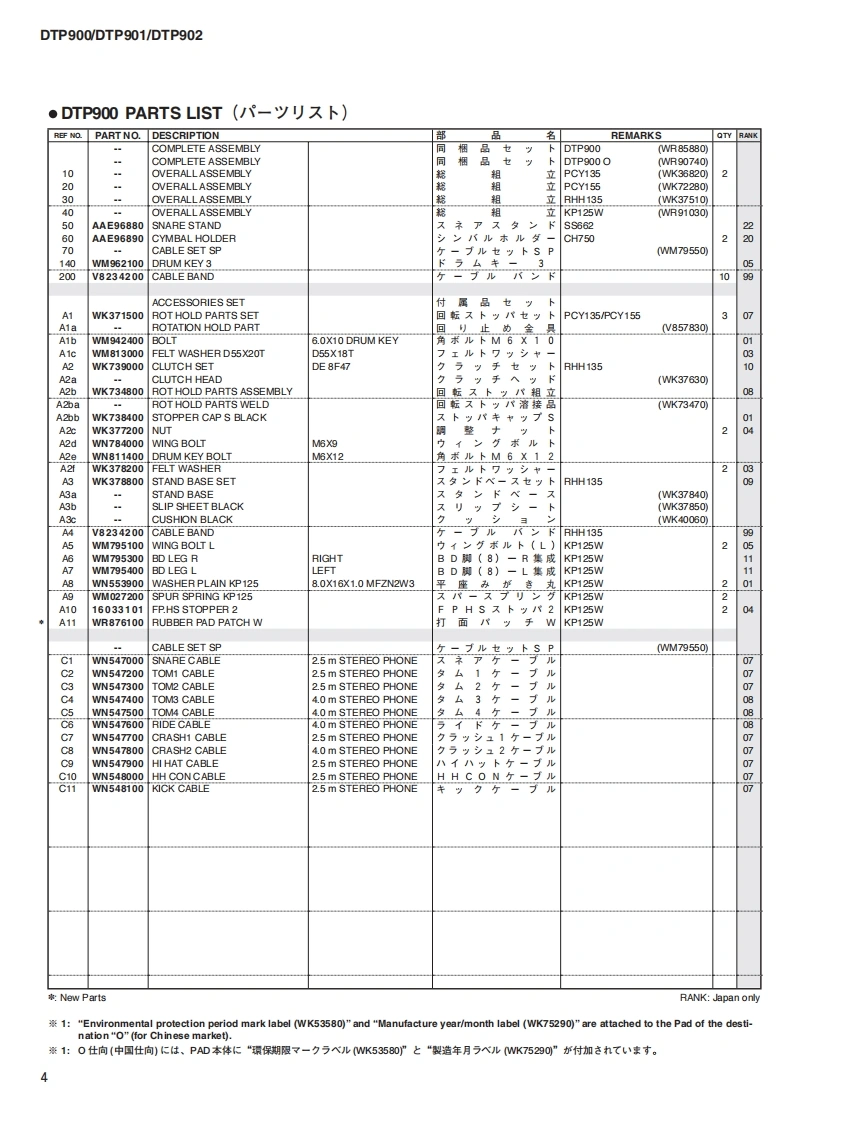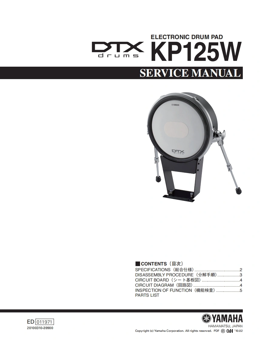 RS130(Rack SystemHXR4LD(Rack SystemDTP900/0TP901/0TP902SERVICE MANUAL·PCY135·PCY155·RHH135.XP100T·XP120T·XP120SD·KP125W.PCY135·PCY155·RHH135·KP125W·XP120SD·XP100T·XP120T·DTX900KYou must have a PCY 135/PCY 155 service manual(ED 011894)before servicing the PCY135/PCY155.You must have a RHH135 service manual (ED 011895before servicing the RHH135.You must have a KP125W service manual (ED 011971)before servicing the KP125W.You must have a XP120SD/XP100SD service manual(ED 011969)before servicing the XP120SD.You must have a XP120T/XP100T service manual·DTX950K(ED 011970)before servicing the XP120T/XP100T.PCY135/PCY15)了7夕-#-七又类施時体CY135/PCY155(ED011894D#-匕又マ=土了儿在二览人龙ě1。RHH135)了7夕-#一七又美施時仁体、RHH135(ED011895D#一匕又マ二土了儿在2览<老ě1。KP125W)了7夕一#一比又芙施時仁体、KP125WED011971)#一比又マ二生了儿在工览<尤ě1。XP120SD)了7夕一#一比又尖施時仁体、XP120SD/XP100SD(EDO11969D#-比ㄡマ=z了儿在z览■CONTENTS(目次)《尼ě1。DTX900KXP120T/XP100TD了7夕一#一七又尖施時仁体、2X120T/XP100T(ED011970)#-比又?二生了几DTXg50水m…2在览《龙ě,。COMPLETE ASSEMBLY(同梱品乜y卜).3PARTS LIST(/代-y)又卜).4ED011977DTP900:20100310-126000YAMAHADTP901:20100310-195300DTP902:20100310-241500HAMAMATSU,JAPANCopyright (c)Yamaha Corporation.All rights reserved.PDF'10.03