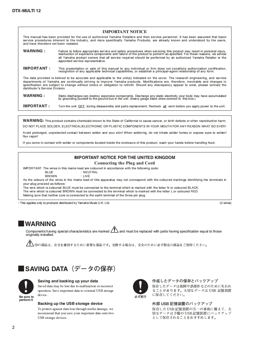 ELECTRONIC PERCUSSION PAD口T×-儿TI12SERVICE MANUALYAMAHA■CONTENTS(目次)SPECIFICATIONS(稔合仕樣)..34PANEL LAYOUT(/パ礻J儿L亻了7卜).5CIRCUIT BOARD LAYOUT(ユ二y卜亻Tヴ卜)6NIRING(結線☒)..8DISASSEMBLY PROCEDURE(分解手順)9LSI PIN DESCRIPTION(LSI端子機能表).14IC BLOCK DIAGRAM(ICブ口y夕☒).16CIRCUIT BOARDS(一卜基板☒)..18TEST PROGRAM(テ又卜プ口5ラ厶)24/37SAVING and LOADING A FILE(7下亻儿0乜-ブ&口-ド)50/53UPDATING(了yブデ-卜)...56FORMAT OF USB MEMORY DEVICE(USB記憶装置)フ才一マy卜(初期化))58INITIAL FACTORY SETTING(77夕卜-乜y卜).59DISPLAY MESSAGES(メy七-y)又卜).60/62BO0 T SEQUENCE(起動-ヶ>又)..64/65PARTS LIST·OPTION(别壳品)BLOCK DIAGRAM(ブ口y夕ダ亻T5ラ4)MAT1CIRCUIT DIAGRAM(回路☒)ED011962YAMAHADTX-MULT11220091125-94500HAMAMATSU,JAPANMAT120091125-5250Copyright (c)Yamaha Corporation.All rights reserved.PDF'09.11