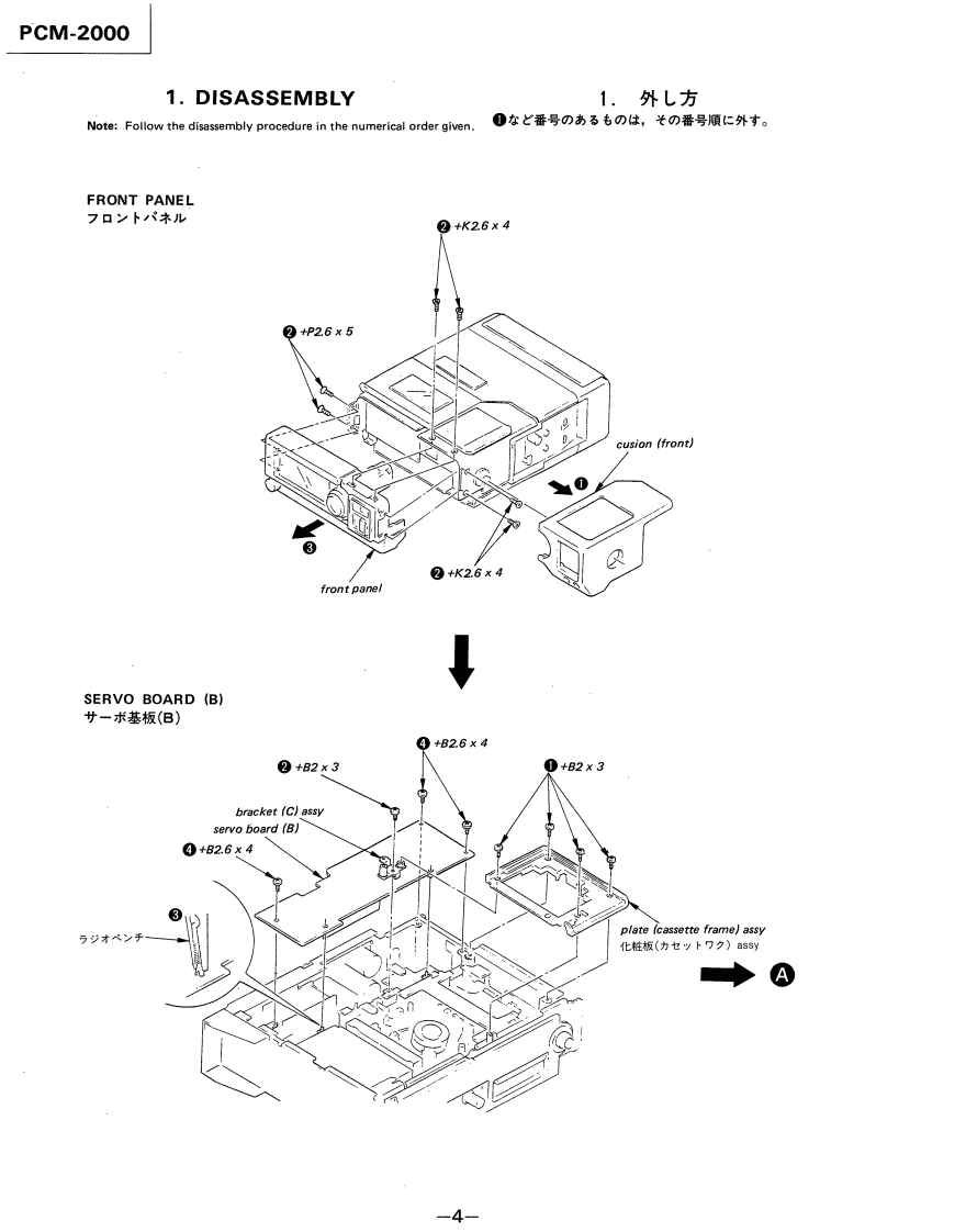 PCM-2000SERVICE MANUALUS,Canadian ModelSerial No.800,301 and laterSECOND EDITIONAEP Model第2版Serial No.500,251 and later機番800,301以降TABLE OF CONTENTS目次Specifications.................................................2概略仕梯+444+44。e00++4400++449900+++4e00444…00“++4444…0000e00▣e0e年21.DISASSEMBLY…41.外L方44400444440044444404444444444440044444444=00000+0000+4442.ADJUSTMENT…72。調整…Mechanica!Adjustment .....................12機精部裯整…12Electrical Adjustment14電氡部调整143.DIAGRAMS…263.匀ヤ岁与么…26PC Board Location...............26基板配置☒26Wavefo0rms…28波形☒.28N0tS33回路☒.才)卜☒/一卜33MD Section Printed Wiring Boards ..........36MD部才卜☒…36MD Section Schematic Diagram ........39MD部回路☒…39Audio Section Schematic Diagram ............42才一子4才部回路图42Audio Section Printed Wiring Boards .....45才一デ分才部才)卜☒…45Digital Section Printed Wiring Boards....47デ逆夕儿部)>卜☒47Digital Section Schematic Diagram .......49子罗夕儿部回路☒…Servo Section Schematic Diagram ....52沙一木术部回路☒…Servo Section Printed Wiring Boards......55沙一术部ブ列之卜☒…55Display Section Printed Wiring Boards ..57子才又才才部卜☒…67Display Section Schematic Diagram......59子1又才亻部回路☒59Semiconductor Lead Layouts ..............61半導体外形☒…4.EXPLODED VIEWS AND PARTS LIST.....634.分粱☒/部品表。5.ELECTRICAL PARTS LIST................715.電氨部品表71DIGITAL AUDIO RECORDERSONY.
