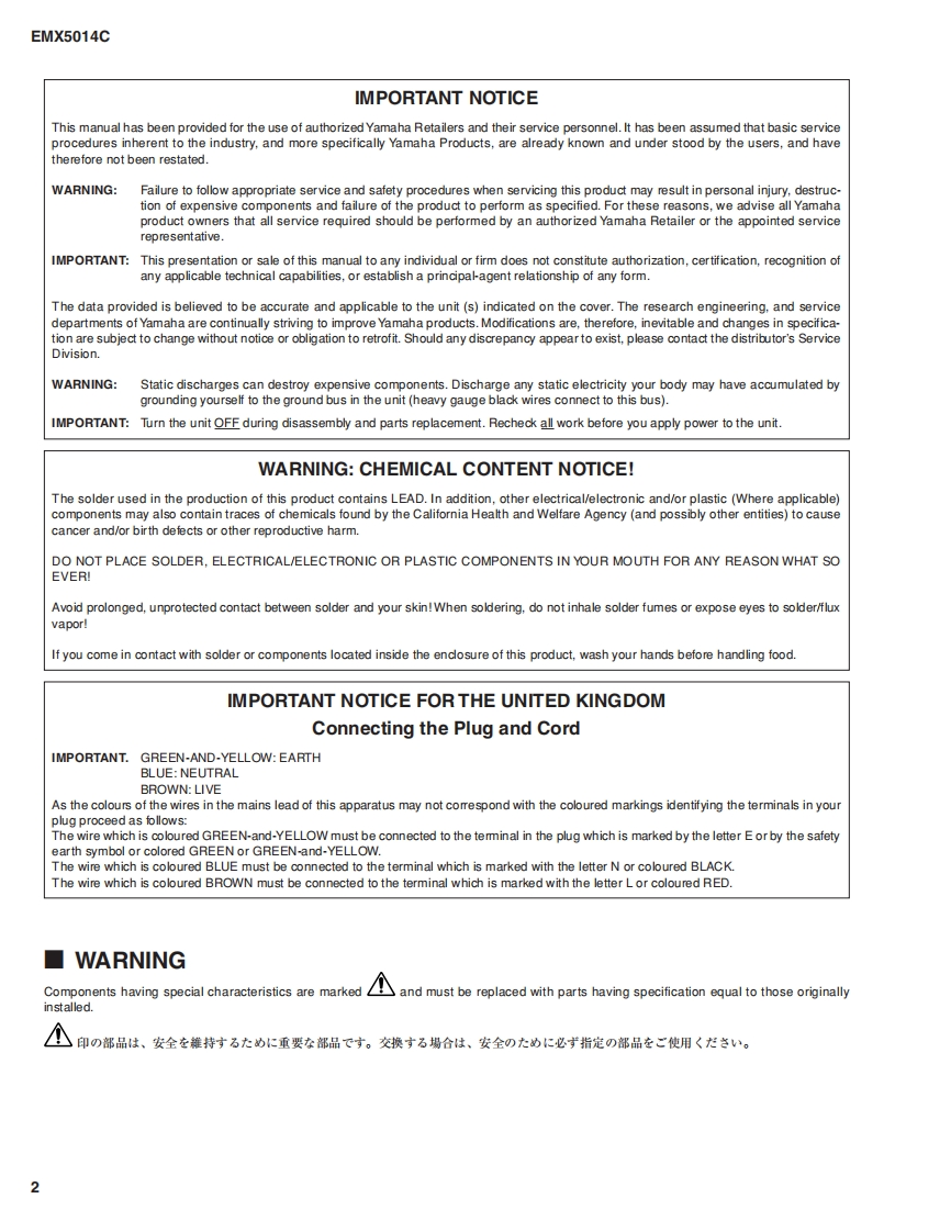 POWERED MIXEREM火504cSERVICE MANUALOPTION(别壳品)RK5014 RACK MOUNT KIT(ラy夕マヴ>半y)■CONTENTS(目次)SPECIFICATIONS(糯合仕樣).3/5PANEL LAYOUT(/S礻儿P卜)....CIRCUIT BOARD LAYOUT(L三y卜L亻T卜).11NIRING D1 AGRAM(基板結線☒).12DIMENSIONS(寸法☒).13DISASSEMBLY PROCEDURE(分解手順).14LSI PIN DESCRIPTION(LSI端子機能表).25IC BLOCK DIAGRAM(ICブ▣y夕☒).27CIRCUIT B0ARDS(之-卜基板☒).29INSPECTION(梭查)...55/66PA UNIT INSPECTION(PA二y卜梭查)…77/80PS CIRCUIT BOARD REPAIR GUIDE(PS之一卜故障修理方亻下)……84/94PARTS LIST之幼廿-E天7三ュT性工3代具了IC&DIODE OUTSIDE FIGURE(外形☒)子(住CF:推素柔潭白代儿刀专使用LT小宝节。BLOCK DIAGRAM(ブ▣y夕ダ不P5与)CIRCUIT DIAGRAM(▣路☒)PA011817YAMAHAEMX5014C:200604-131250RK5014:200604-005250HAMAMATSU.JAPANCopyright (c)Yamaha Corporation.All rights reserved.KM LPo 06.03