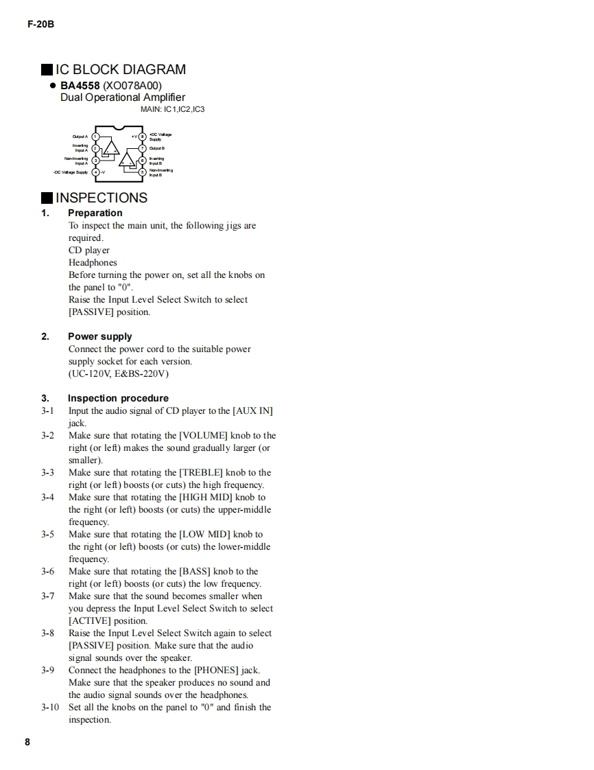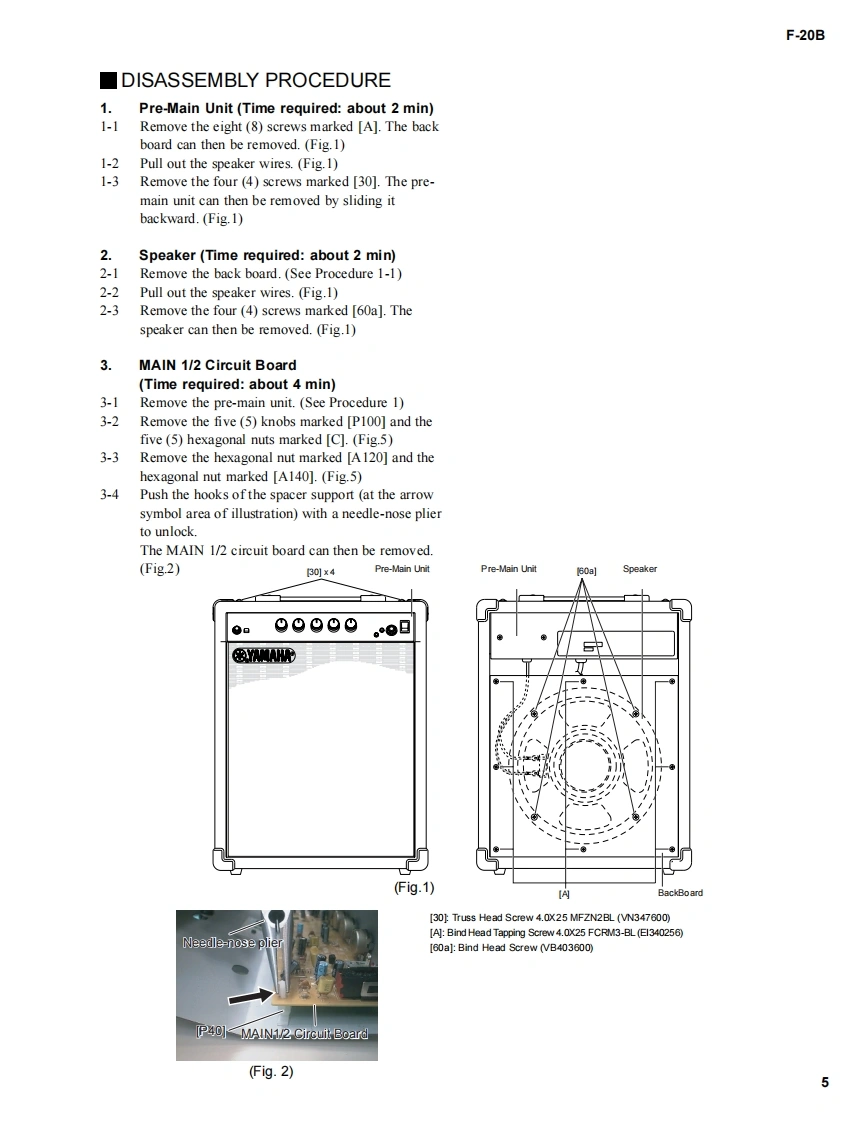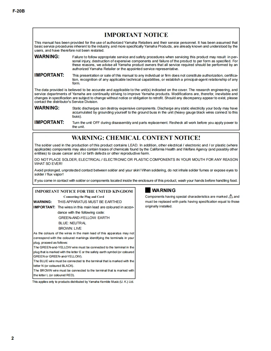 BASS AMPLIFIERF-20BSERVICE MANUAL6=99999YAMAHAE■CONTENTSSPECIFICATIONS3PANEL LAYOUT..CIRCUIT BOARD LAYOUT..4BLOCK DIAGRAMDISASSEMBLY PROCEDURE.5.CIRCUIT BOARDSIC BLOCK DIAGRAM.88PARTS LISTThdoou士aprintd anrin)pp南w前oyikOVERALL CIRCUIT DIAGRAMYAMAHAGA011592HAMAMATSU.JAPAN20010720-178001.507K-033 K (DPrinted in Japan 2001.08