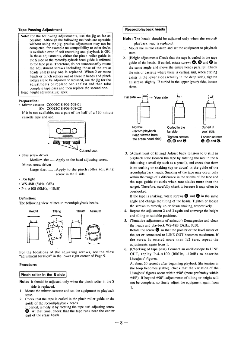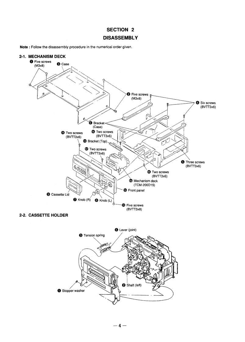 TC-KA3ESSERVICE MANUALUS ModelCanadian ModelE ModelModel Name Using Similar MechanismTC-K222ESJTape Transport Mechanism TypeTCM-200D15SPECIFICATIONSSystemTape trpeRecordin时ystem4-track 2chunnel stereType l sape04%11nb/mSuiy Type I(NORMAL)315 Hz,Jed H.D.)GeneralFast winding time (appres.l1J号250Vb/m)sec.(with Suny C60 caosettel315 Ha.3nd H.DJPewer requirementsBiatWhere purchssedAC biasU.5.A.and Carvda120V AC MO HzTape typeHeadsOtlwr couniric1517,00HzErasingS&FPLNORMAL(t3 d8,IECRcueingLAUCHPower cansumpisn30wMayingLASY y NV METAL15.22,000Hz性幻dB1EC430x135×30mmt7x5h×1'/.mche15.16,00Hzincl.precting ports and cuntrulsg10r性3」B,用Capstan (Jirect drive liar orque BSLrecueding)1 g)Wow and fiutterSupplied accessoriesw.Peuk (IEC)Audiu connecting conds (2)22多W.民M54NA!Remute commander RM-J7OI (1Type ll tape,Souy Type ll (HICH):59 dBSuny batteries SUM-3NSH (2Type IV tape,Suny Type IV (METAL):61 dB±05界W,ok (DIN)Canadian model onlyInputsDesigu and specifcations are subje't to change withuutDalby NR anAppraxinat经ylu样B5JD at i kHz,10 dB at 5 kHz15 dB at 500 Hz,20 dB at I kHz510dB at tU Hz.24 dB at I kHzSTEREO CASSETTE DECKSONY
