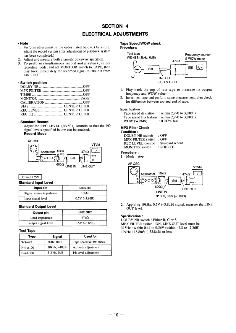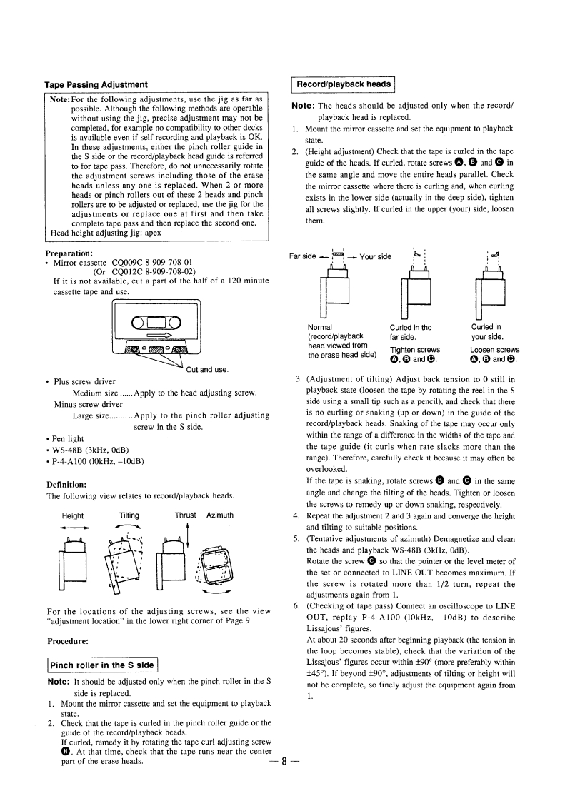 TC-KA6ESSERVICE MANUALAEP ModelPhoto GOLDModel Name Using Similar MechanismTC-K808ESTape Transport Mechanism TypeTCM-200D18SPECIFICATIONSSystemHarmonic distortionOutputsRecording systemTape type4-track 2-channel stereo(160 nWb/m 315 Hz,3rd H.D.)Load impedance:Over 10 kilohmsYPe IV METAL1.5%(250 nWh/m 315 Hz 3rd H.D.)Headphones (stereo phooe jack)Output level 0-3 mW at a load impedance ofAC biasFrequency response (Dolby NR of)32 ohmsGeneralHeadsTp时peHead (TP IINORMALType l tape220-230VAC,50/601zErasingSkF20.190014,RecordingSD(43PlayingSDindl.projecting parts andMators20-1o,000 HyCapetan motor x 1 (direct drive linear toryue B5L3dB.-Hreourding!Mass (approx)Reel motor×1 DC motor)7.6kg(16Js130)Assist (mechanism drive)molor x1 (DC motor)Wow and futterSupplied accessories5W.Pesk (EC)Audin cannecting cords (2)0.025%W,RM5NA助0am华W.Peak (DIN空ndpc6aertehnewihaS/N ratio improvement。llw nise reduction and HXInputsmanufacturd under licens from5 dB at 1 kHz,10 dBat 5 kHzLine inpuds Iphono iacks]IXilb Leaburies LicunsingSensitivity:0.16 V15 dB at 500 Hz,20 dB at kHzInput impedance:47 kilohmsyHg(u里10 dB at 100 Hz 24 dB at 1 kHz"DOLBY."the double-D symboland"1XR'afradlemarks ul Dlby LabeeatoeieSTEREO CASSETTE DECKSONY