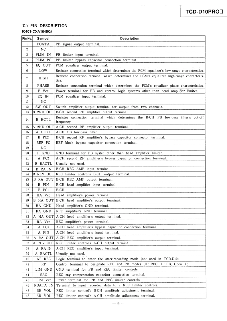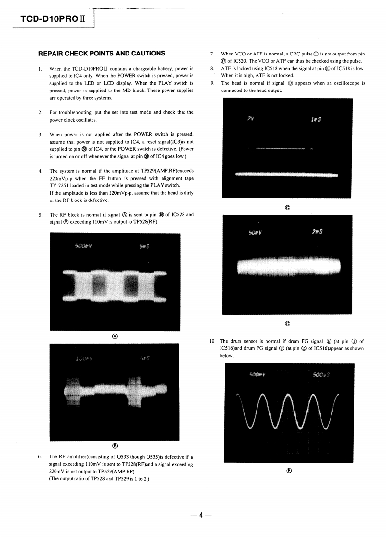微电子时空基准带好音乐的休闲时光fzmcu.taobao.comTCD-D10PROISERVICE MANUALUS ModelSerial No.205721 and later3rd EditionCanadian ModelSerial No.220021 and laterVer1.02000.0gAEP ModelSerial No.266231 and laterWith CORRECTION-1(9-956-388-91UK ModelSerial No.230251 and laterSpecification+.................................25.DIAGRAMS…心Repair Check Points and Cautions......................................5-1.Circuit Boards Location..............................355-2.Block Diagram -Signal Processing Section -...............36GENERAL........................................................5-3Block Diagram MD Servo Section -................395-4Printed Wiring Boards and Schematic Diagram-Main Section-...........................442.DISASSEMBLY…205-5Printed Wiring Boards and Schematic Diagram-Analog Section-...............................562-l.Kn0b4…5-6.Printed Wiring Boards and Schematic Diagram2.2.Cassette Compartment's Dress Panel..............................20-System Control Section-...............................662-3.Cabinet(Upper)205-7.Semiconductor Lead Layouts........732-4.Control Motor.......................................215-8.742-5.Dpupm-...212-6.Reel M0l0r…6.EXPLODED VIEWS................82-7.Capstan Motor..........................227.ELECTRICAL PARTS LIST.................863ADJUSTMENTS…233-1Mechanical Adjustments253-2.Electrical Adjustment.........................254.ERROR CODE….32DIGITAL AUDIO TAPE CORDERMICROFILMSONY3-370-700-13