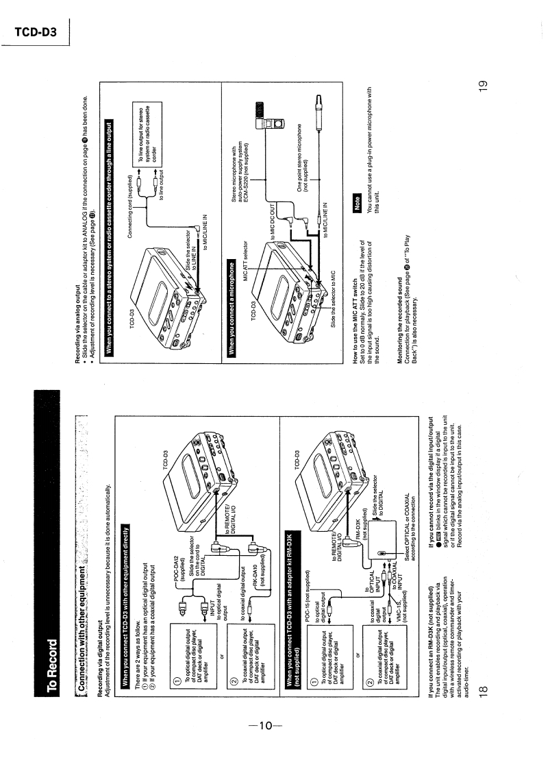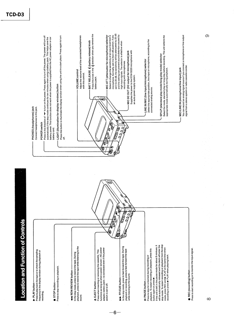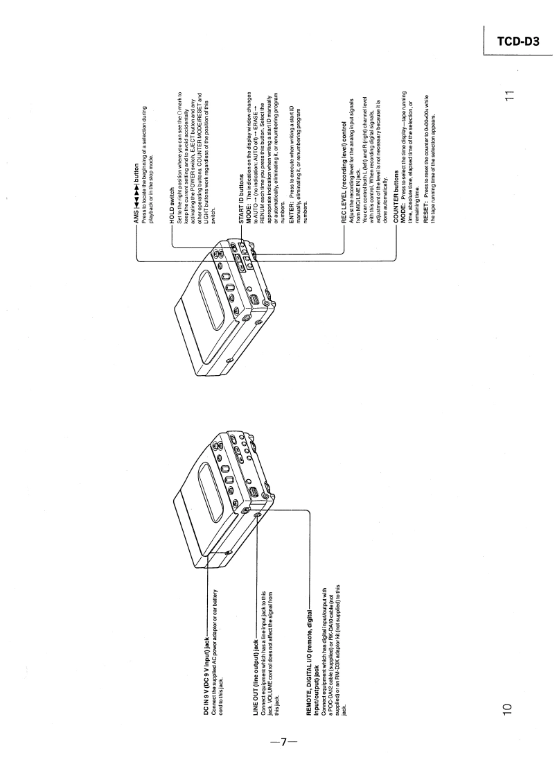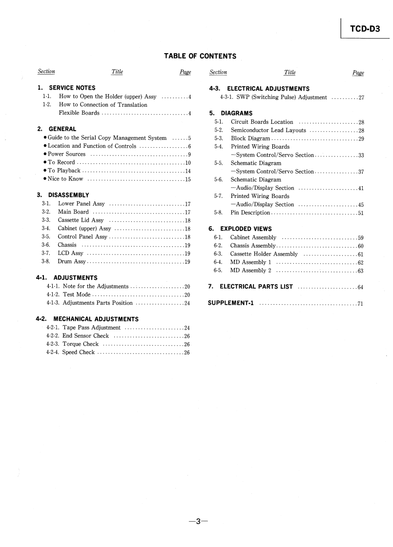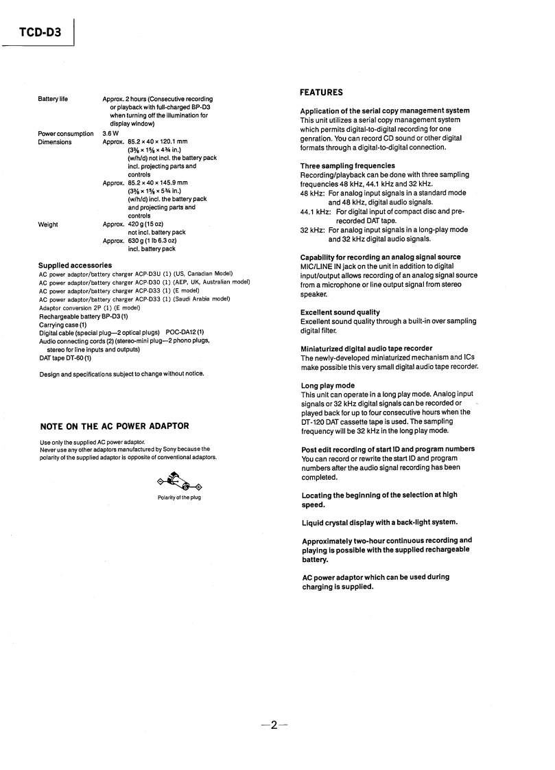 微电子时空基准带好音乐的休闲时光fzmcu.taobao.comTCD-D3SERVICE MANUALUS ModelCanadian ModelAEP ModelUK ModelEModelAustralian ModelDigital Audio TapeSPECIFICATIONSTapeDigital audio tapeInputRecording headRotary headJack typeRatedMinimumRecording timeStandard:120 minutesinput levelinput levelLong-play mode:240 minutesMIC INMIC IN(with DT-120)min jack10ohmsLINE IN0.25mVNE IN500mWUNE INTape speedStandard:8.15 mm/s47 kohms80 mvLong-play mode:4.075 mm/sDrum rotationStandard:2,000 rpmLong-play mode:Output1,000 rpm (record)RatedJack typeImpedanceLoad im-dan2.000 rpm(playback)ouputError correctionDouble Read Solomon codeLINE0r00OUT700 ohms500mMore thar10 kohmsTapeHEAD.13.6m(20.4aml)PHONES27 ohms17 mW32 ohmsTrack pitchSampling frequency48 kHz,44.1 kHz,32 kHzModulation system8-10 ModulationInput/OutputTransfer rate2.46 Mbit/sec.REMOTE,DIGITAL l/O jack(special jack)Number of channel2 channels,stereoDigital input/output,remote control operation and timer-QuantizationStandard:16-bit linearactivated operation is possible by connection with an adaptorLong-play mode:12-bit Non linearkit to this jack。.Frequency responseStandard:Fs 48 kHz 20-22,000 Hz(±1.0dBOther JackFs44.1kHz20-20.000HzMIC DC OUT(special mini jack)(±1.0d8)Fs32kHz20-14,500HzGeneral(±1.0d8)Power requirementsDC 6V When mounting batteryLong-play mode:DC IN9VjackF832kHz20-14.500HzWhen using AC power adaptor(±1.0dB)(supplled):AC 120 V,60 Hz (US,Canadian model)Signal to noise ratioStandard:more than 90 dBAC 220 V,50 Hz (AEP model)Long-play mode:more than 90 dBAC 240 V,50 Hz (UK model)(1 kHz IHF-A,22 kHz LPF,LINE IN)Dynamic rangeStandard:more than 90 dB:Ac100-240V,50/60Hz(Em0de0AC 240 V,50 Hz (Australian model)Long-play mode:more than 90 dBAC 120-240 V,50/60 Hz (Saudi Arabia model)(1 kHz IHF-A,22 kHz LPF,LINE IN)Total harmonicStandard:less than 0.008%Car battery cord(CPM-D3)for 12 V cardistortion(1 kHz,22 kHz LPF,LINE IN)-continued on next page-Long-play mode:less than 009%(1 kHz,22 kHz LPF,LINE IN)Wow and flutterBelow measurable limit (less than±0.001%W.PEAK)DIGITAL AUDIO TAPE-CORDERSONY