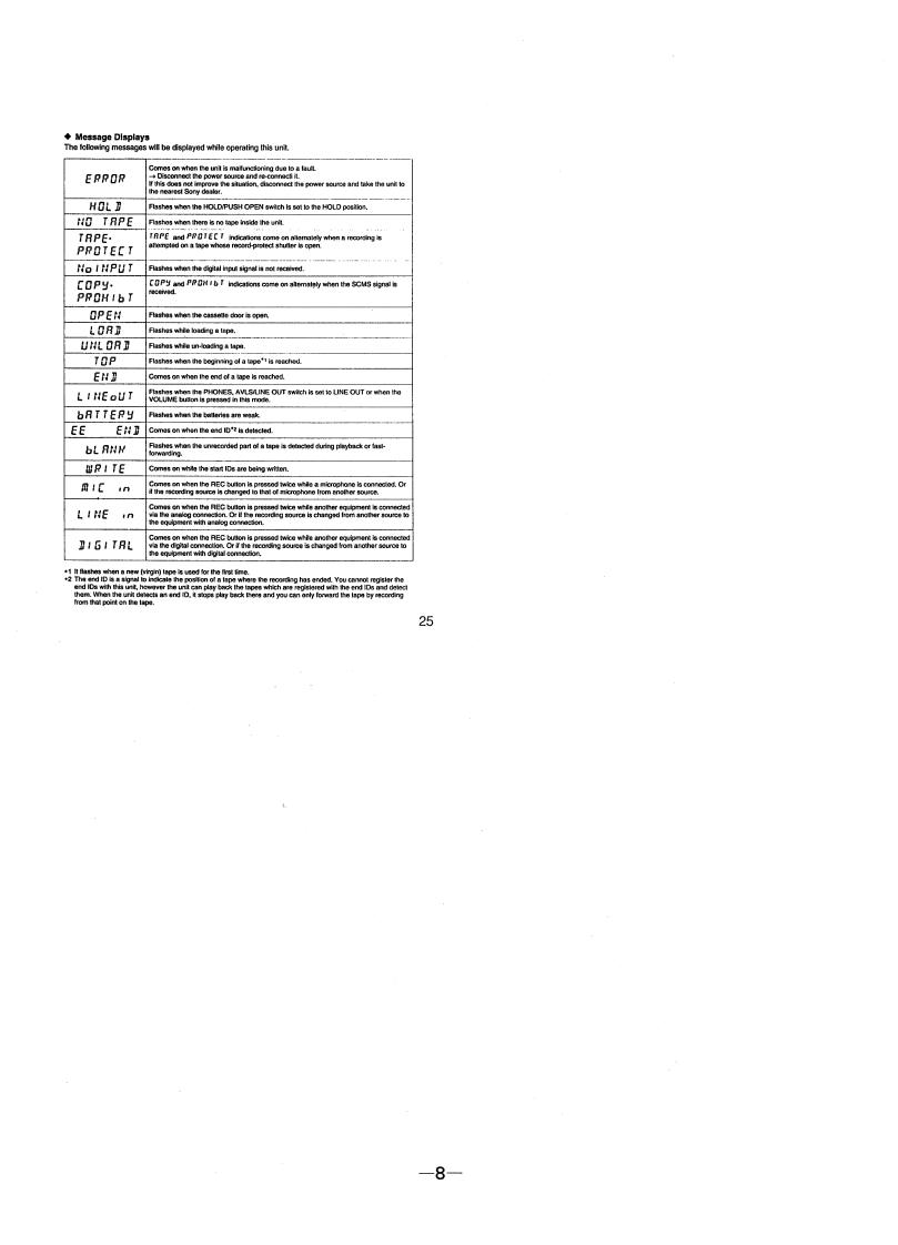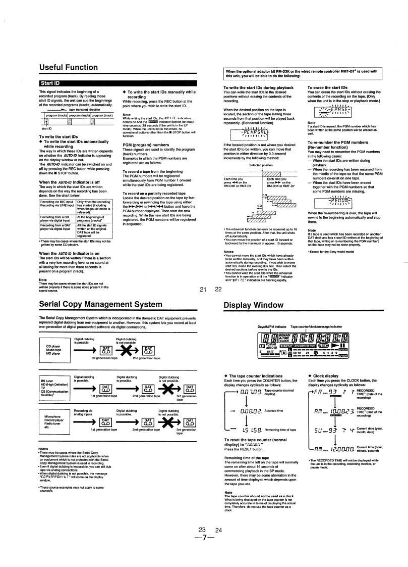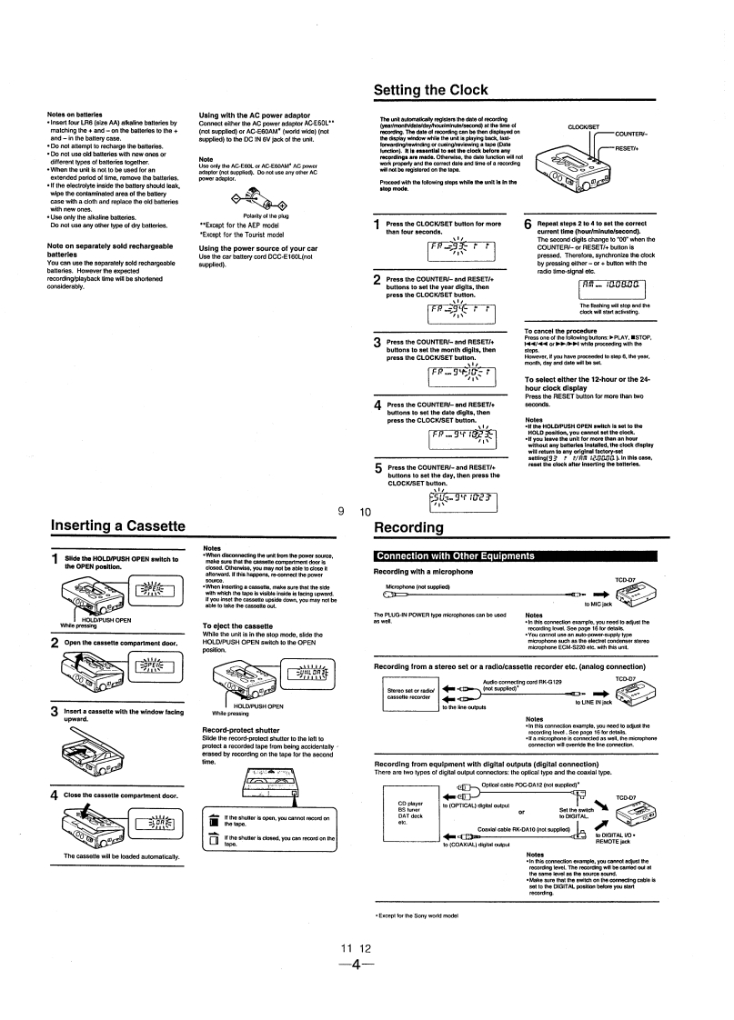 微电子时空基准带好音乐的休闲时光fzmcu.taobao.comTCD-D7/D7KSERVICE MANUALUS ModelCanadian ModelAEP ModelTCD-D7Tourist ModelTCD-D7KDDigital Audio TapeWALKmAnSPECIFICATIONSModel Name Using Similar MechanismTCD-D3ucrdng tmeDighal audio tapeTape Transport Mechanism TypeMT-D7-47Standard:120 minutesreuyoStandsrd:Fs 48 KHz 20-22.000 Hz (1.0 dB)F844.1kHz20-20.000H2仕1.0CB322150t0e20-14,500H1.0Signal 1o noise ratioAC power adaptor AC-E60L (1)(AEP model anly)Long-play mode:more than 90 cB(1 Hz IHF-A.22 kHz LPF,LINE IN)andard:more than 9o dBRe (i(IHF-A.22 LPF.LINE IN8ege品aMmTotal harmoric dislortionStandsrd:less than 0008%(1 kHz.22 Hz LPF.UNE IN)Pug adaptor (1)Wow and fher2an3F3d:e85hsn0.09.(1k此,22 KHz UPF,NENmeasurable limit (less than 20.001%W.PEAK)Digital cable POC-DA12 (1)InputJack typeRated inpul levelMinimum inout lewelspecial ph切t+2 optical pl.门sslereo mirijack 4.7 kp0.4 mVUNE INstereo minijack 47 k:500mV80 mvOutputJack typeMaximum output level Load impedanceoenceooeagnanE28manuaslereo minijack 27LINE OUTPHONESLINE OUT500mW5 mW +5mWmore than 10 kPHONES320益eo密:8E0edeaeaMnthe Sory AC power adaptor (suppliod to the AEP,Tourist model onty)for use onOperating voltageUS Caradian model120V AC 60HzAEP model220-230WAG50HEGerman model120V AC 60Hz or 220V AC.50HzTourist model100-240WAC50/60Hzearbaieyog6ceE18ampke2ecv2YcreanRecordingSony akalne AM3 (N)35431Sory NC-AA12WApprox 132.6x35.7 x B8.2 mm (5x1x31/z in.](whed)not inel.projecting partsMassDIGITAL AUDIO TAPE-CORDERSONY