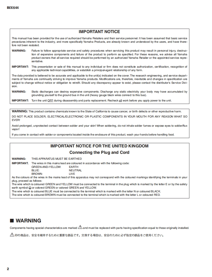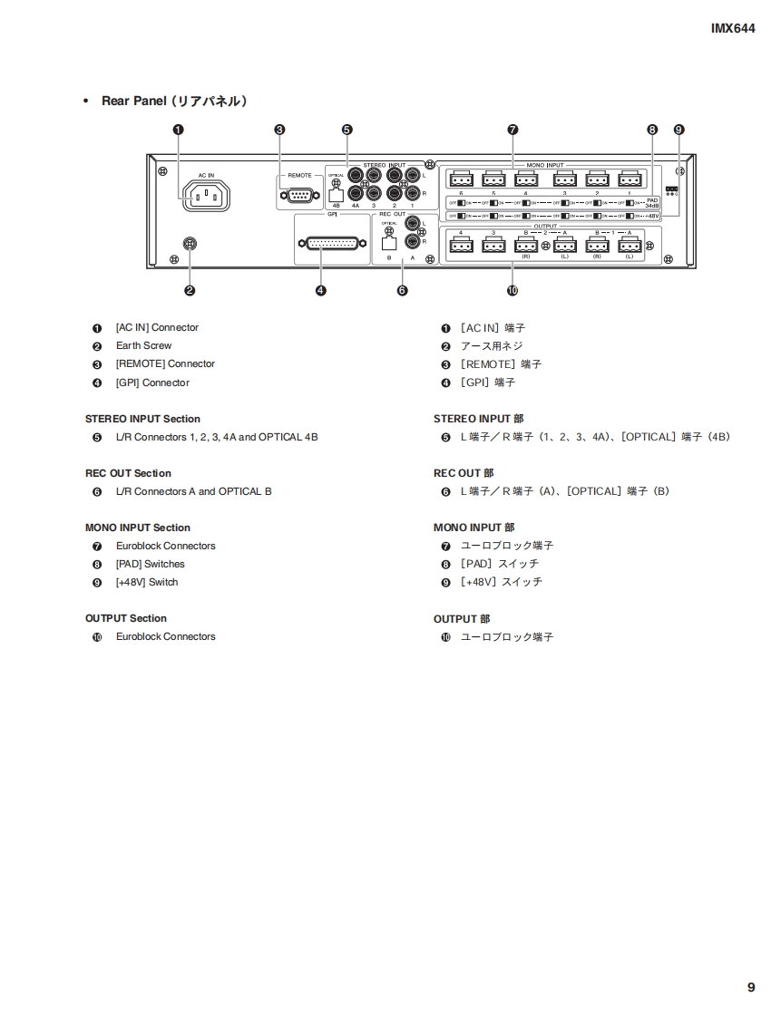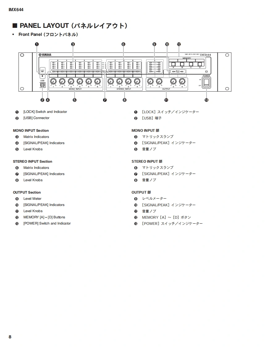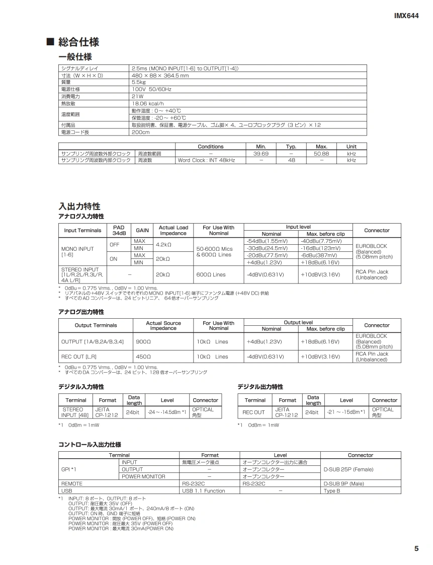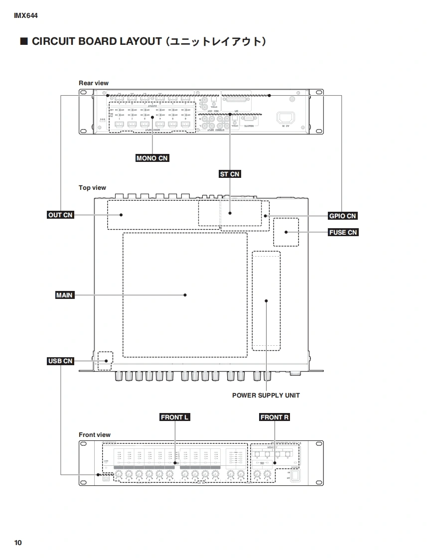 DIGITAL INSTALLATION MIXERIMX644SERVICE MANUAL■CONTENTS(目次)SPECIFICATIONS3糝合仕樣.…“.5DIMENSIONS(寸法☒)7PANEL LAYOUT(/八礻儿L了ヴ卜)8CIRCUIT BOARD LAYOUT(ユ二y卜y了7)..10DISASSEMBLY PROCEDURES(分解手順).11CIRCUIT BOARDS(>-卜基板☒).17INSPECTIONS29検查38MEMORY INITΠALIZATION(E)-D初期化).47GPI CIRCUIT EXAMPLE(GPI回路例)..48PARTS LISTCIRCUIT DIAGRAMYAMAHAPAO11938HAMAMATSU,JAPAN200903-才-ブブ5入Copyright (c)Yamaha Corporation.All rights reserved.KMYMW '09.03