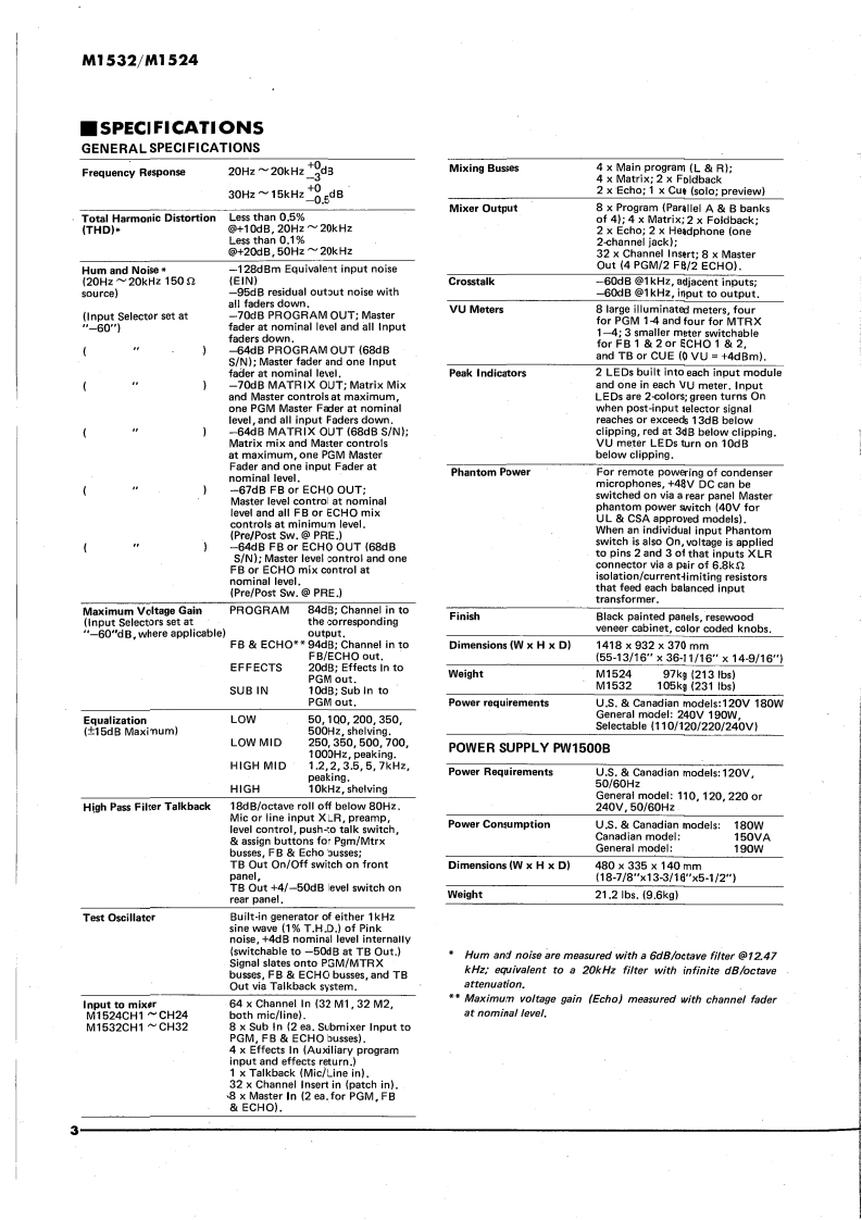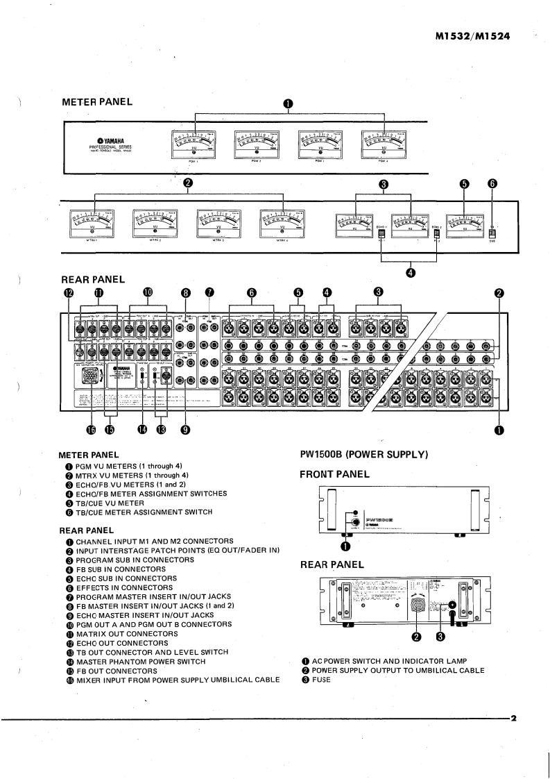 132124SERVICE MANUALFRONTREAR061876:79988860135912932(36-5/8)WEIGHT:M1532105kg(2311bsM152497kg(2131bsUNIT:mm (Inch)■CONTENTSIDENTIFICATION OF PARTS AND CONTROLS.1INPUT MODULE13SPECIFICATIONS......................3MASTER MODULE ....................15DISASSEMBLY PROCEDURES..··..··5FB PHONE MODULE17CHECK AND ADJUSTMENT..····6TALKBACK MODULE.·.··.···19BLOCK DIAGRAM····10MT1/MT4 CIRCUIT B0ARDS...··.··.·21LEVEL DIAGRAM.·11C0 CIRCUIT B0ARD.·,....····:21GROUNDING SCHEME·.··········PW1500B POWER SUPPLY22SINCE 1887YAMAHANIPPON GAKKI CO..LTD.HAMAMATSU.JAPAN0065252100 Printed in Japan.7.82