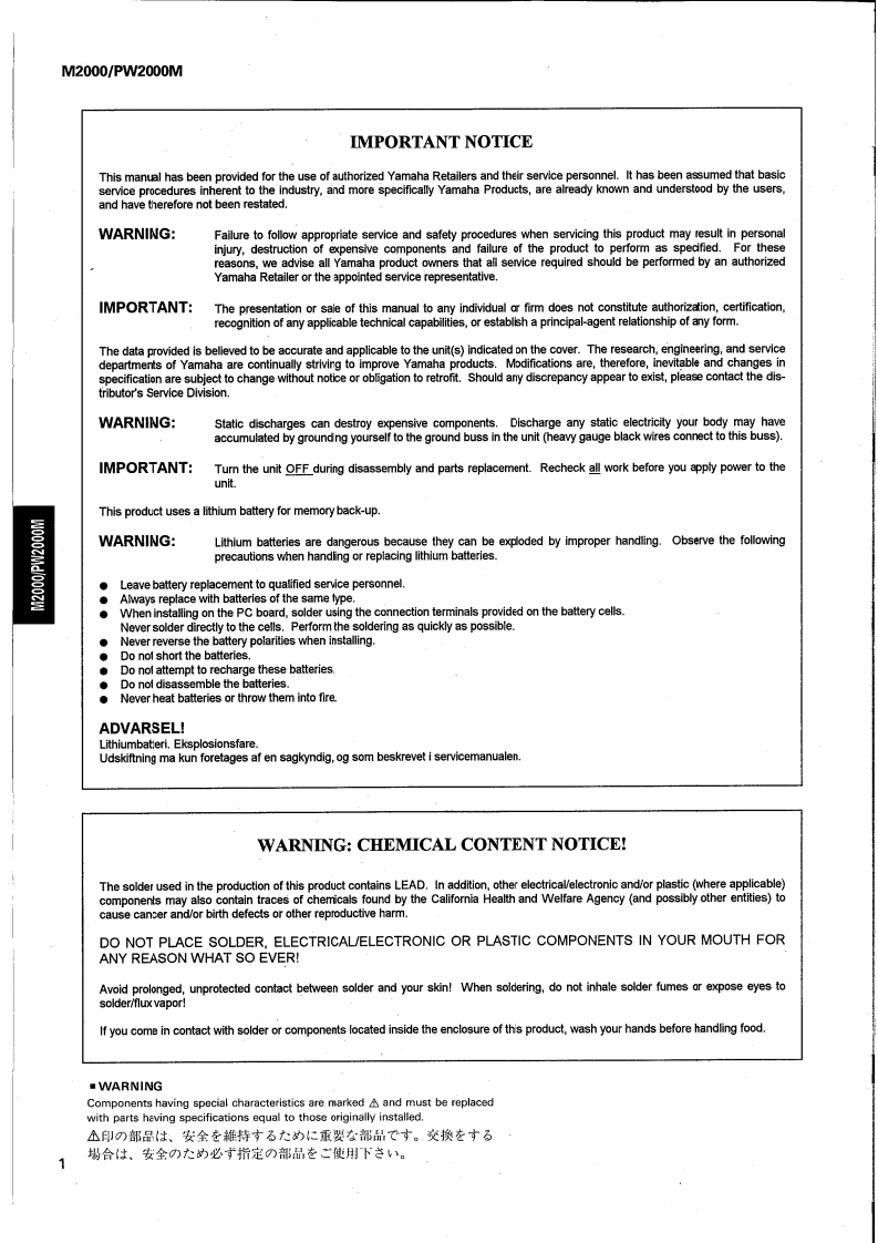 MIXING CONSOLE/POWER SUPPLY=wY号8S8SERVICE MANUAL00/0002080/009020m■CONTENTS(目次)SPECIFICATIONS(稔合仕横)2/5DIMENSIONS(寸法☒,8PANEL LAYOUT(IR礻儿才P中卜)CIRCUIT BOARD LAYOUT WIRING(ユ二y卜山亻卫力卜七基板結線☒)20DISASSEMBLY PROCEDURE(分解手順)22LSI PIN DESCRIPTION(LSI端子機能表)36IC BLOCK DIAGRAM(Cブ口y夕☒)..37INSPECTIONS(検查)..39/55TEST PROGRAM(テ又卜ブ口5与ㄙ).51/65ERROR MESSAGES(Iラ-Xy乜-).54/67MIDI IMPLEMENTATION CHART........68CIRCUIT BOARD CIRCUIT DIAGRAM(一卜基板☒匕回路☒).69YAMAHA CORPPA011225HAMAMATSU,JAPAN19940320-1100000-1619940320-1600000-322.65K-7601 PRINTED IN JAPAN 94.0419940320-1350000-2419940320-1850000-40