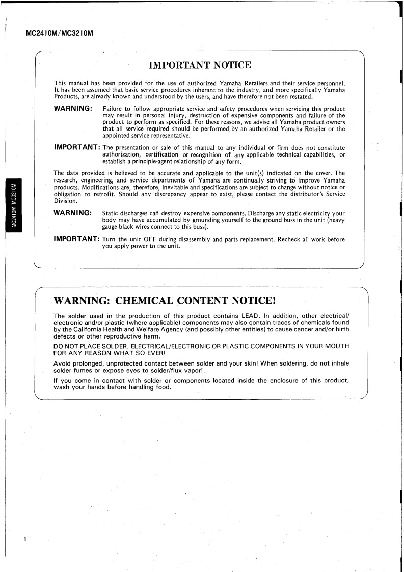 MIXING CONSOLESA三2L+1OM/A二三21OMSERVICE MANUALMC3210M■CONTENTS(目次)SPECIFICATIONS(然合仕樣)…PANEL LAYOUT(バ*儿L亻了ヴ卜)26CIRCUIT BOARD LAYOUT(1二y亻ヴ卜)…12DIMENS引ONS(寸法☒)…14CIRCUIT BOARD WIRING(基板桔線☒)…16DISASSEMBLY PROCEDURE(分解手順)…24IC BLOCK DIAGRAM(ICブ口y夕☒)…35MODIFYING THE MIXER(機能の姿更仁一Lt)36CIRCUIT BOARDS(之一卜基板☒)…37INSPECTIONS(検查)…58/64CIRCUIT DIAGRAM(回路☒)…71PARTS LISTLM01I144YAMAHA CORP.HAMAMATSU.JAPAN2.97K-117 e Printed in Japan '93.01