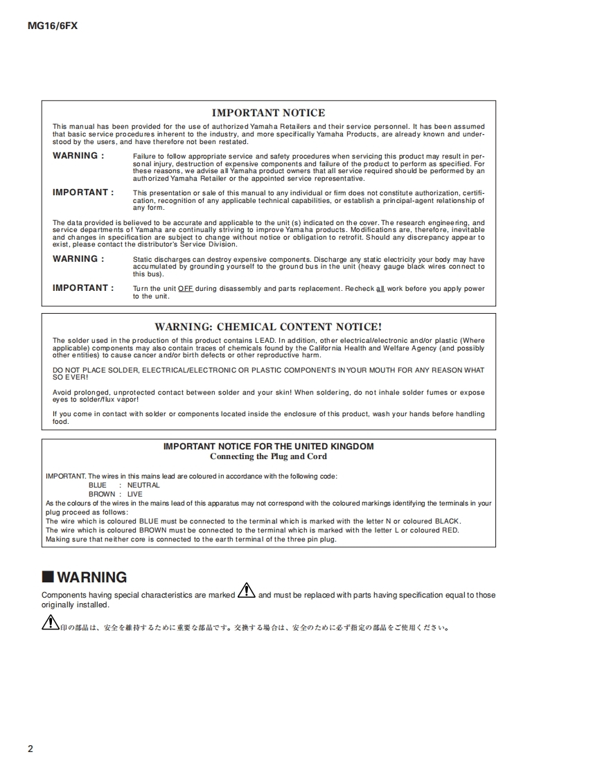 MIXING CONSOLEMG166EXSERVICE MANUALA manufacture number should use thismanual with goods of 9 or more figures.(本マ二ュ了儿体、製造番号9桁以上)商品飞乙使用〈龙志L。)The example of a manufacture number.(製造番号例)JCLJ01001UCCLJ01001■CONTENTS(目次)CHNCL01001SPECIFICATIONS(然合仕樣)3/59-11 figuresDIMENSIONS(寸法☒)(9~11桁)PANEL LAYOUT(Iパ礻儿不予ヴ卜)78The service manual of PA 011678 shouldCIRCUIT BOARD LAYOUT WIRINGbe used for the goods whose manufacture(ユ二y卜少亻予中卜&結線☒)12number is 7 figures.DISASSEMBLY PROCEDURE(分解手順)14(製造番号加7桁①商品体、PA011678)LSI PIN DESCRIPTION(LSI端子機能表)19廿一上又マ二工下儿卷乙使用〈龙ě。)IC BLOCK DIAGRAM(ICブ口y夕☒)21The example of a manufacture number.CIRCUIT BOARDS(一卜基板☒)22(製造番号例)INSPECTIONS(検查)…30/36LK01001PARTS LISTBLOCK DIAGRAM LEVEL DIAGRAM7 figures(ブ口y夕ダ不下方与么&山儿ダ亻了分与厶)》(7桁)OVERALL CIRCUIT DIAGRAM(給回路☒)PA011781YAMAHAHAMAMATSU,JAPAN200306-49800Copyright (c)Yamaha Corporation.All rights reserved.PDF-K338 IT LP05.08