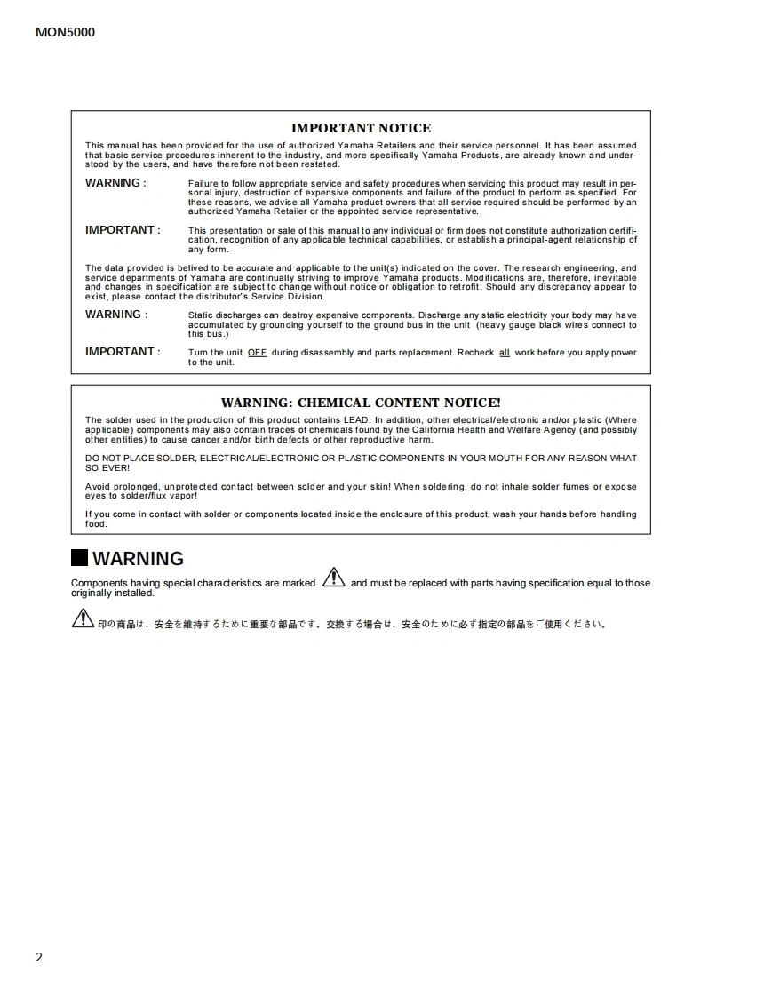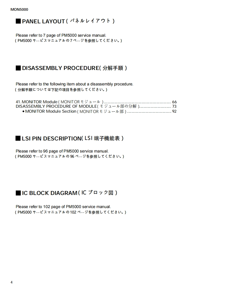 MONITOR MODULEMON5000SERVICE MANUALn0日口@日立o00位0@日-@g▣口20包o②g■CONTENTS(目次)CIRCUIT BOARD LAYOUT(二y卜亻77卜)....3PANEL LAYOUT(パ礻儿y亻了ヴ卜).DISASSEMBLY PROCEDURE(分解手順)..LSI PIN DESCRIPTION(LSI端子機能表).......4IC BLOCK DIAGRAM(ICブ口y夕☒)..CIRCUIT BOARDS(一卜基板☒).......PARTS LISTCIRCUIT DIAGRAM(回路☒)PA011697米YAMAHA200307-270000HAMAMATSU,JAPANCopyright (c)Yamaha Corporation.All rights reserved.:'03.09