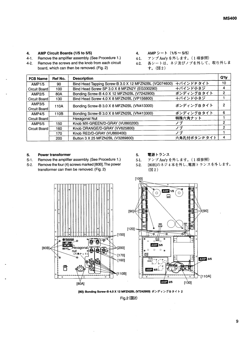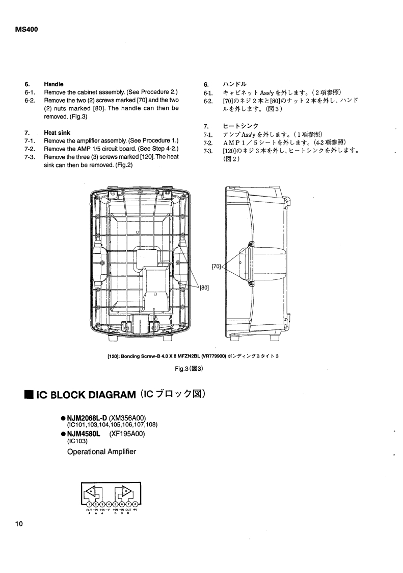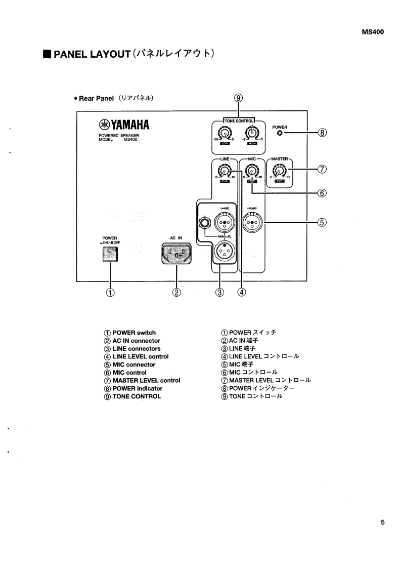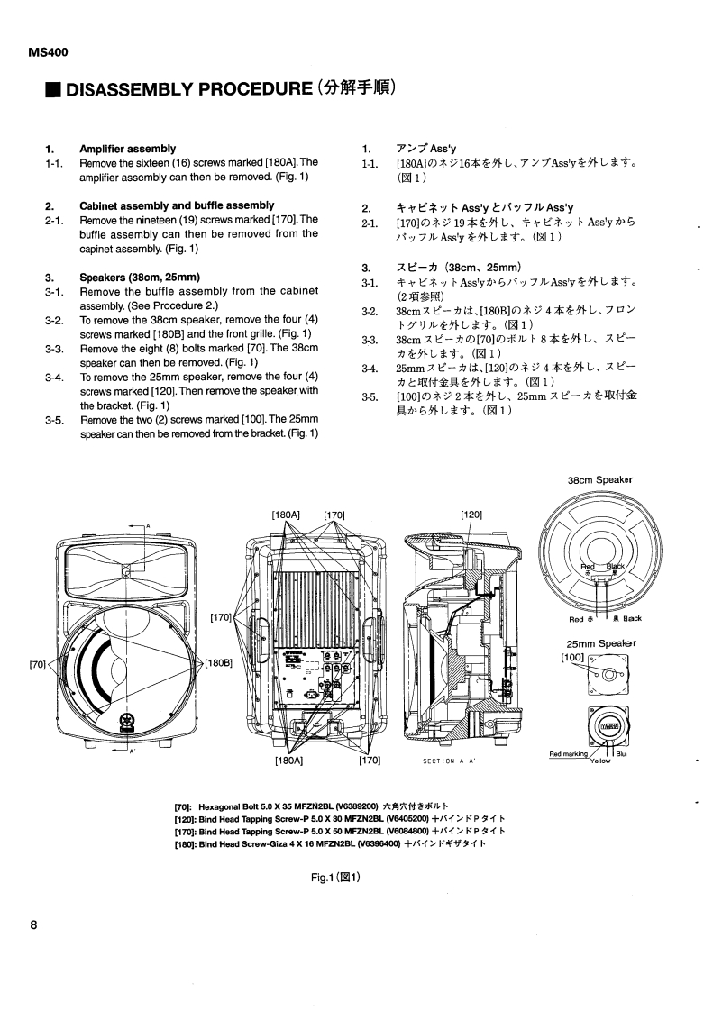 POWERED SPEAKERMS400SERVICE MANUAL■CONTENTS(目次)SPECIF1 CATIONS(轮合仕樣).DIMENSIONS(寸法☒)4BLOCK DIAGRAM(于口y安7分罗)义PANEL LAYOUT(/R礻儿了卜)..5CIRCUIT BOARD LAYOUT(ユ二y卜了ヴ卜)…6W川RNG(结線☒),n,7DISASSEMBLY PROCEDURE(分解手順)..8ICBL0 CK DIAGRAM(ICブ口y夕☒).10CIRCUIT BOARDS(之一卜基板☒)..11色8889*INSPECTIONS(梭查),16OVERALL CIRCUIT DIAGRAM(瓮回路☒)…19This documer is printed on chiorine free(ECF)paper with soy ink.PARTS LIST米YAMAHAPA011556HAMAMATS,JAPAN20001210-980001.415K-215 K Printed in Japaun 2000.12