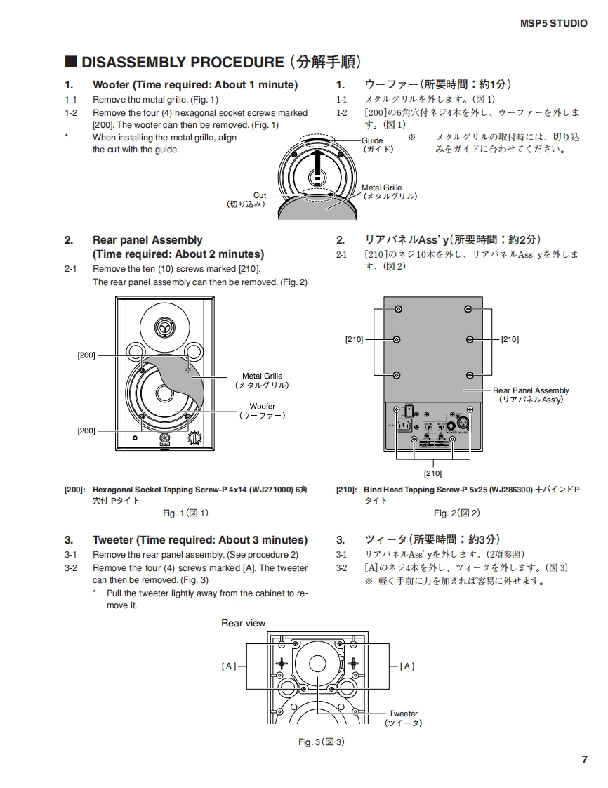 MSPPowered Monitor SpeakerseriesMSP5 STUDIOSERVICE MANUAL■CONTENTS(目次)SPECIFICATIONS(瓮合仕樣)DIMENSIONS(寸法☒)..4PANEL LAYOUT(/代礻儿亻了7卜)..5CIRCUIT BOARD LAYOUT(ユ二y卜P卜)DISASSEMBLY PROCEDURES(分解手順).7CIRCUIT BOARDS(之一卜基板☒)11INSPECTIONS(検查)..13之功廿-Ex7三工T性工3代补7BLOCK DIAGRAM(ブ▣y夕ダ不下5ラ)15(任CF:舞地素系漂白代儿刀专使用LT宝寸。CIRCUIT DIAGRAM(回路☒).16PARTS LISTPA011843YAMAHA200612-34650HAMAMATSU,JAPANCopyright (c)Yamaha Corporation.All rights reserved.MLP 06.11