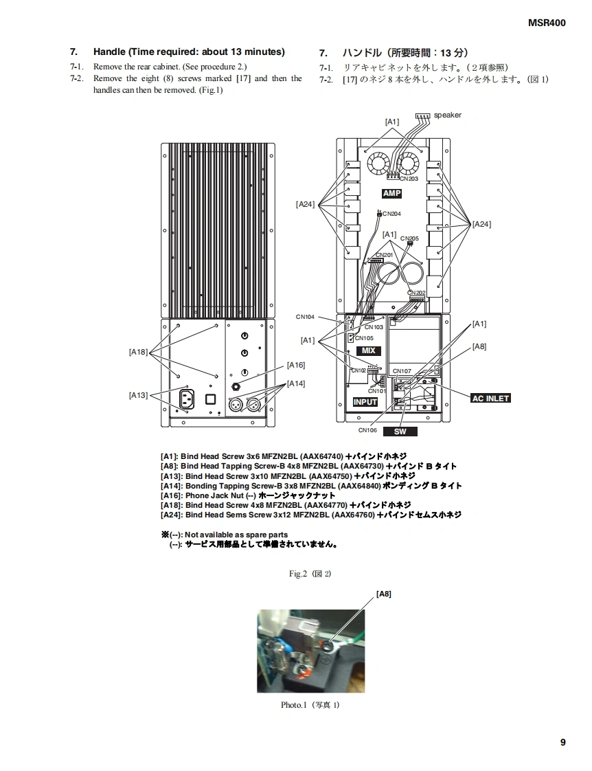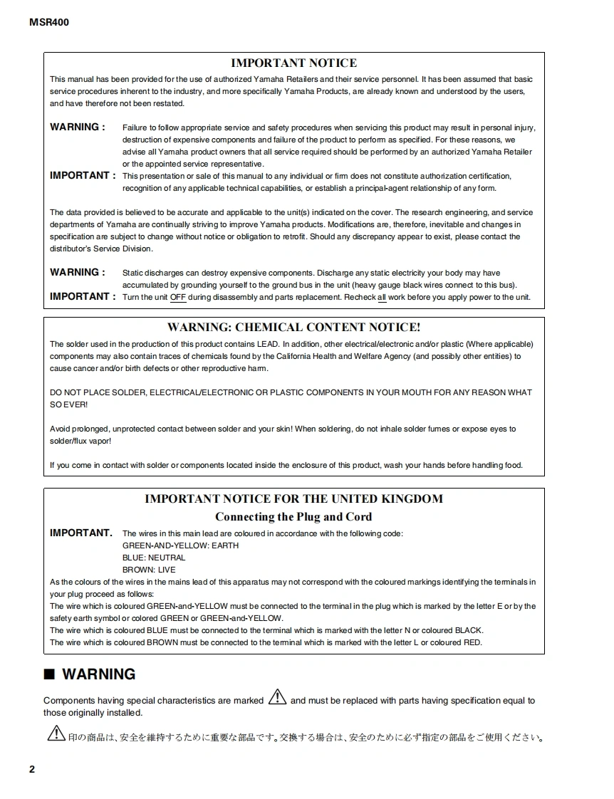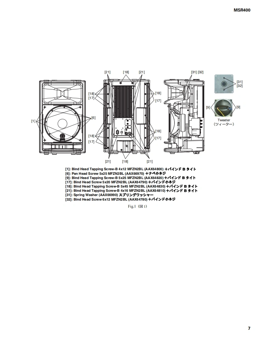 POWERED SPEAKERMSR400SERVICE MANUAL■CONTENTS(目次)SPECIFICATIONS(合仕樣).3PERFORMANCE GRAPH(特性☒)4PANEL LAYOUT(八ネU了中卜).4CIRCUIT BOARD LAYOUT(L=y卜U了中卜).5DIMENSIONS(寸法☒).5WIRING DIAGRAM(結線☒)5IC BLOCK DIAGRAM(ICブ▣y夕☒)...6DISASSEMBLY PROCEDURES(分解手顺)6CIRCUIT BOARDS()-卜基板☒)10INSPECTIONS(検查).14PARTS LIST江4于《E0F:瓶地素系源自,バ儿プ力态使用L℃L1亲。BLOCK DIAGRAM(ブOy夕ダ了ヴラ厶)This dooument is printed on chlorine free (ECF)psperOVERALL CIRCUIT DIAGRAM(回路☒)YAMAHAPAD11777HAMAMATSU,JAPAN200505-86100Copyright (c)Yamaha Corporation.All rights reserved.PDF-K185M LP05.05