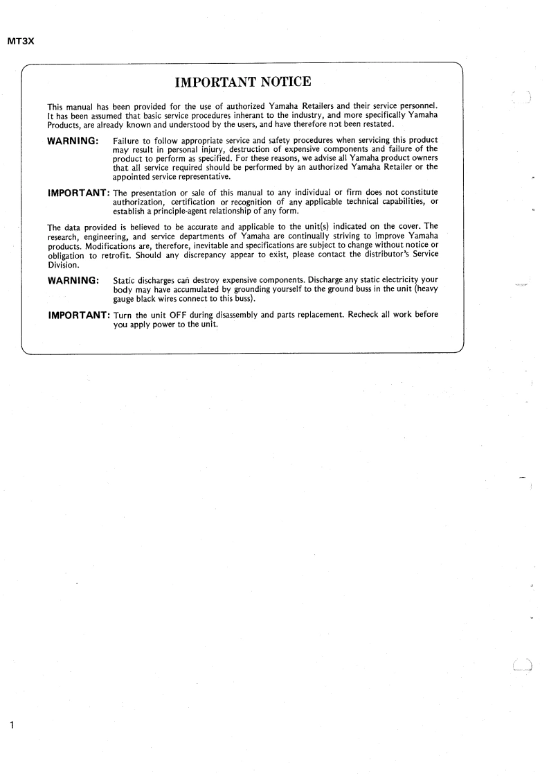 MULTITRACK CASSETTE RECORDERSERVICE MANUALYAMAHA■CONTENTSSPECIFICATIONS2PANEL LAYOUT…CIRCUIT BOARD LAYOUT…BLOCK DIAGRAM…6DISASSEMBLY PROCEDURE.ADJUSTMENTS…10CIRCUIT BOARDS14PARTS LISTYAMAHA CORP.LM oo69o1HAMAMATSU.JAPAN2.2K-992 Printed in Japan '89.3