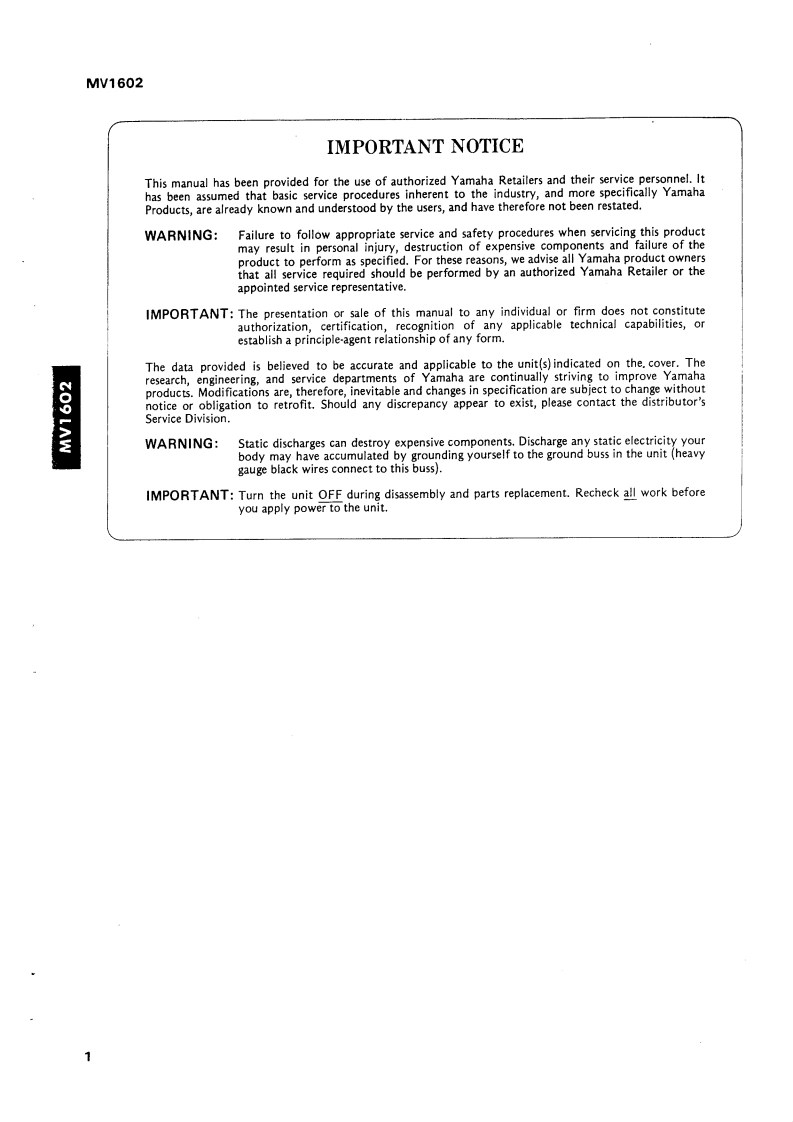 SERV.31871MIXERM/1马→二SERVICE MANUAL■CONTENTS(目次)SPECIFICATIONS(籁合仕樣)…2PANEL LAYOUT(バネ儿L了ヴ卜)…CIRCUIT BOARD LAYOUT(1二yk亻了7卜)7BLOCK DIAGRAM(ブ口y夕ダ了少ラㄙ)…8LEVEL DIAGRAM(Lペ北夕亻了夕亏么)…10DIMENSIONS(寸法☒)…1OIC BLOCK DIAGRAM(Cブ口y夕☒).11DISASSEMBLY PROCEDURE(分解手順)…12CIRCUIT BOARDS(之一卜基板☒)…16PARTS LISTYAMAHA CORP.LM006944HAMAMATSU.JAPAN3.1K-442 Printed in Japan '89.7