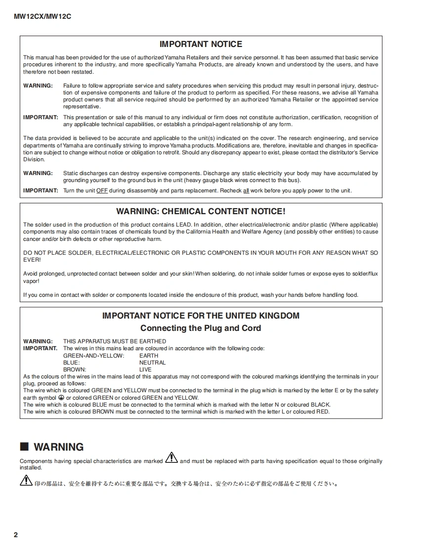 USBMIXING STUDIOMV1己=xIW1已=SERVICE MANUALo o999YAMAHAYAMAHAMW12CXMW12C■CONTENTS(目次)SPECIFICATIONS(瓮合仕樣).3/5DIMENS引ONS(寸法☒)7PANEL LAYOUT(/S礻儿不P卜)...8CIRCUIT BOARD LAYOUT(ユ二y卜T卜)..12NIRING DIAGRAM(基板結線☒)13MW12 CX OVERALL ASSEMBLY WIRING(MW12CX然粗立配線☒)..14MW12 C OVERALL ASSEMBLY WIRING(MW12C瓮粗立配線☒).19MW12CXD1 ISASSEMBLY PROCEDURES(MW12CX分解手順)..24MW12 C DISASSEMBLY PROCE DURES(MW12C分解手順)...27LSI PIN DESCRIPTION((LS引端子機能表)..30IC BLOCK DIAGRAM(ICブ▣y夕☒)32CIRCUIT BOARDS(之一卜基板☒)....35INSPECTIONS(検查).45/53PARTS LIST之功廿-Ex7三工T性工3代邦了IC&DIODE FIGURES(外形☒)于任C好:撞素系潭白代刀专使用LT宝寸。BLOCK&LEVEL DIAGRAM(ブ▣y夕&A儿亻P5ラ4)CIRCUIT DIAGRAM(回路☒)PA011859YAMAHAMW12CX:20070625才-ブブラ亻MW12C:20070625才-ブブラ亻又HAMAMATSU,JAPANCopyright (c)Yamaha Corporation.All rights reserved.KM LP vo 07.06