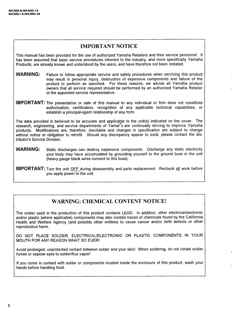 几/79MIXING CONSOLESM×D-B/MX×三一一-1三NIX2DD-1s/A×二DD-+SERVICE MANUALMX200-16■CONTENS(目次)SPECIFICATIONS(轮合仕模)…2/4PANEL LAYOUT(パ*儿L了ヴ卜)…6CIRCUIT BOARD LAYOUT(ユ二yK亻了ヴ卜)…9BLOCK LEVEL DIAGRAMS(ブ口以夕&山入儿夕个了夕ラ么)….10DIMENSIONS(寸法☒)…11VIRING(基板桔粮☒)…12DISASSEMBLY PROCEDURE(分解手順)…14CIRCUIT BOARDS(之一卜基板☒)…18IC BLOCK DIAGRAM(ICブ口y夕☒)…28INSPECTIONS(検查)…29/31OVERALL CIRCUIT DIAGRAM(回路☒)…33PARTS LISTYAMAHA CORP.PA011253HAMAMATSU.JAPAN19941101-99000-8/19941101-119000-122.7K-732 Printed in Japan '94.1119941101-139000-16/19941101-179000-24