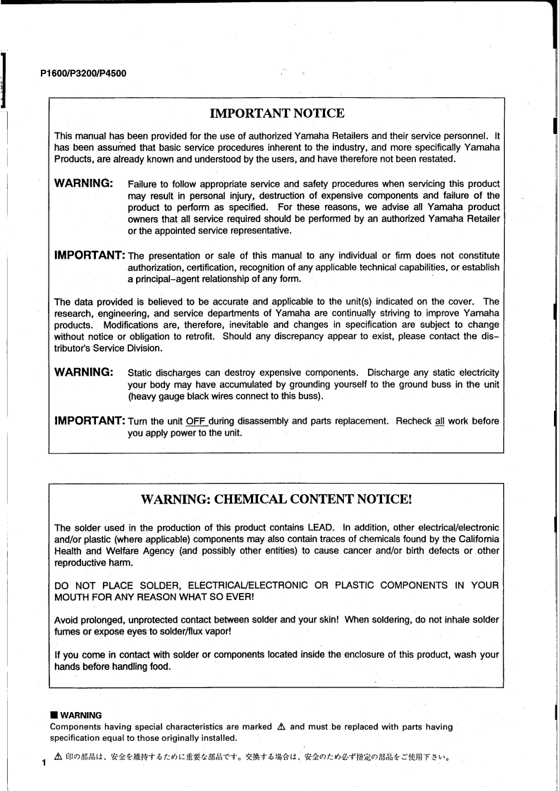POWER AMPLIFIERD1600D3200/P4500SERVICE MANUALYAMAHAP4500■CONTENTS(目次)SPECIFICATIONS(総合仕樣)2/3PANEL LAYOUT(/パ礻儿L了夕卜).4DIMENSIONS(寸法☒).5BLOCK DIAGRAM(ブ口y夕岁了方ラA)CIRCUIT BOARD LAYOUT WIRING.5(工二ツ卜不了ヴ卜上基板結線☒).6DISASSEMBLY PROCEDURE(分解手順).10IC BLOCK DIAGRAM(ICブ口y夕☒)13POWER CONSUMPTION vs OUTPUT POWER GRAPH(消費電力对出力特性☒)…13CIRCUIT BOARD(之-卜基板☒).14/19INSPECTIONS(検查)20/23CAUTION FOR SPEAKER CONNECTION(又上一力一配線)26/27TROUBLESHO0TING(卜ラブ儿之1-テ1Y少).26/27PARTS LISTPA011374YAMAHA CORP.19971020P1600.95000HAMAMATSU.JAPANP3200-1450001.94K-455(D Printed in Japan '97.7P4500-165000