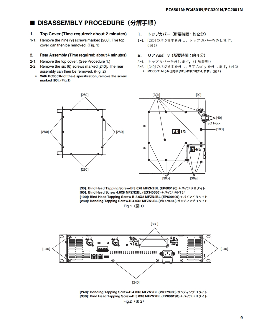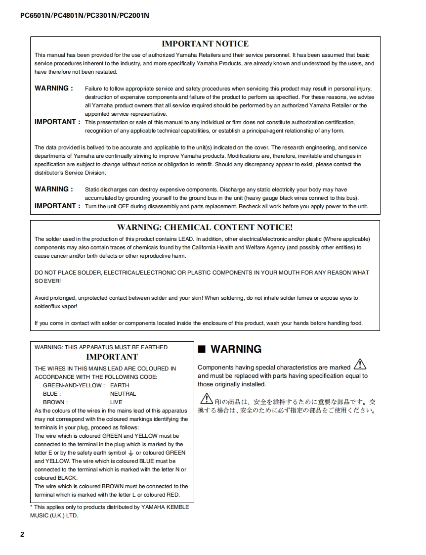 POWER AMPLIFIERPC6501N/PC4801N/PC3301N/PC2001NSERVICE MANUALPC6501N■CONTENTS(目次)SPECIFICATIONS(合仕樣).3/4PANEL LAYOUT(/八UU了中卜)5CIRCUIT BOARD LAYOUT(ユ二y卜UF中卜)6DIMENS引ONS(寸法☒)PERFORMANCE GRAPHS(特性☒).8DISASSEMBLY PROCEDURE(分解手顺)w..............m............m.......8NOTES ON WIRING(配線上D注意).14/15LSI PIN DESCRIPTION(LSI端子機能表)16IC BLOCK DIAGRAM(ICブ口y夕☒).17CIRCUIT BOARDS()一卜基板☒).19INSPECTIONS(検查)….....30/38PARTS LISTBLOCK DIAGRAM(ブ▣y夕岁了ヴラ厶)VIRING DIAGRAM(基板結線☒)江4于《E0F:瓶地素系源自,バ儿プ力态使用L℃L1亲。This dooument is printed on chlorine free (ECF)psperOVERALL CIRCUIT DIAGRAM(▣路☒)YAMAHAPA011763HAMAMATSU,JAPANPC6501N:200412-399000PC3301N:200412-315000Copyright (c)Yamaha Corporation.All rights reserved.PDF-K9051M UP05.01PC4801N:200412-.367500PC2001N:200412-283500