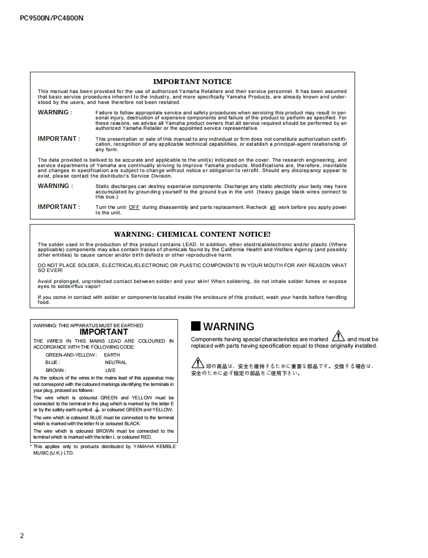 POWER AMPLIFIERSPC9500N/PC4800NSERVICE MANUAL零YAMAHAPC9500N■CONTENTS(目次)SPECIFICATIONS(総合仕樣)3/4PANEL LAYOUT(礻儿了ヴ卜).5BLOCK DIAGRAMブ口y夕ダ亻了分ラ么)6WIRING(结線☒).DIMENS1ONS(寸法☒).......10DISASSEMBLY PROCEDURE(分解手順).11LSI PIN DESCRIPTION(LSI端子機能表)..16IC BLOCK DIAGRAM(ICブ口y夕☒).......17CIRCUIT BOARDS(一卜基板☒)19INSPECTIONS(検查).....…30/37PARTS LISTC四时-Ez?二1T生工4k[ECF:些素系得白心私ブ)在使用LT主寸OVERALL CIRCUIT DIAGRAMS(回路☒)米YAMAHAPA011652HAMAMATSU,JAPANPC9500N:20020925.4000001.361K-3611MPrinted in Japan 2002.9PC4800N:20020925-330000