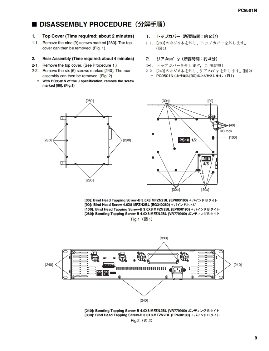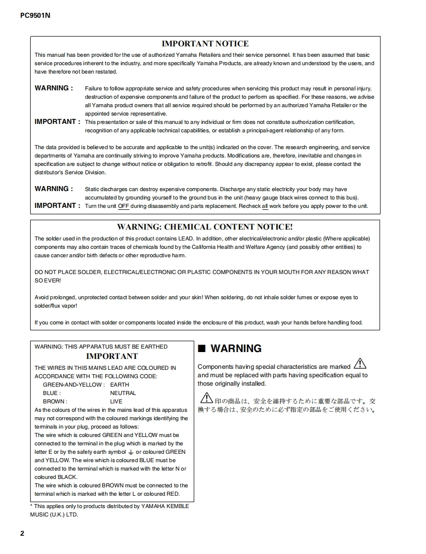 POWER AMPLIFIERPC9501NSERVICE MANUALYAMAHA■CONTENTS(目次)SPECIFICATIONS(合仕樣)..3/4PANEL LAYOUT(W八UU了中卜.5CIRCUIT BOARD LAYOUT(I二y卜UF中卜)6DIMENS引ONS(寸法☒)7PERFORMANCE GRAPHS(特性☒).8DISASSEMBLY PROCEDURE(分解手顺).9NOTES ON WIRING(配線上)注意)14/15LSI PIN DESCRIPTION(LS端子機能表)16IC BLOCK DIAGRAM(ICブOy夕☒)17CIRCUIT BOARDS()-卜基板☒)19INSPECTIONS(検查)….28/36CO-PULPPARTS LSTBLOCK DIAGRAM(ブ▣y夕岁了ヴラ厶)VIRING DIAGRAM(基板結線☒)工外子《ECF:精地素系漂白バ儿力态使用L℃L1亲寸。This dooument is printed on chlorine free (ECF)psperOVERALL CIRCUIT DIAGRAM(▣路☒)YAMAHAPA011767HAMAMATSU,JAPAN200412.441000Copyright (c)Yamaha Corporation.All rights reserved.PDF-K006 M UP05.02