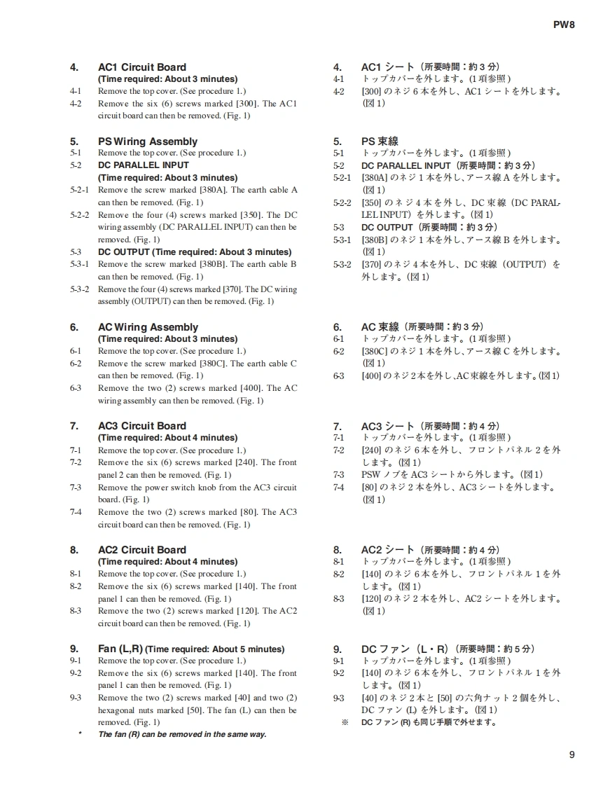 POWER SUPPLYPW8SERVICE MANUALYAMAHAPW8■CONTENTS(目次)SPECIFICATIONS(総合仕樣)3DIMENSIONAL DIAGRAM(寸法☒)3PANEL LAYOUT(/パ礻儿亻T7卜)...4CIRCUIT BOARD LAYOUT(二y卜亻T7卜).5DISASSEMBLY PROCEDURE(分解手順)......6IC BLOCK DIAGRAM(ICブ口y夕☒)10CIRCUIT BOARDS(-卜基板☒)...........10PARTS LISTBLOCK DIAGRAM(ブ口y夕ダ亻T5ラㄙ)CIRCUIT DIAGRAM(回路☒)PA011911IYAMAHA200807才-ブブ与亻ㄡHAMAMATSU,JAPANCopyright (c)Yamaha Corporation.All rights reserved.PDF KM'08.07