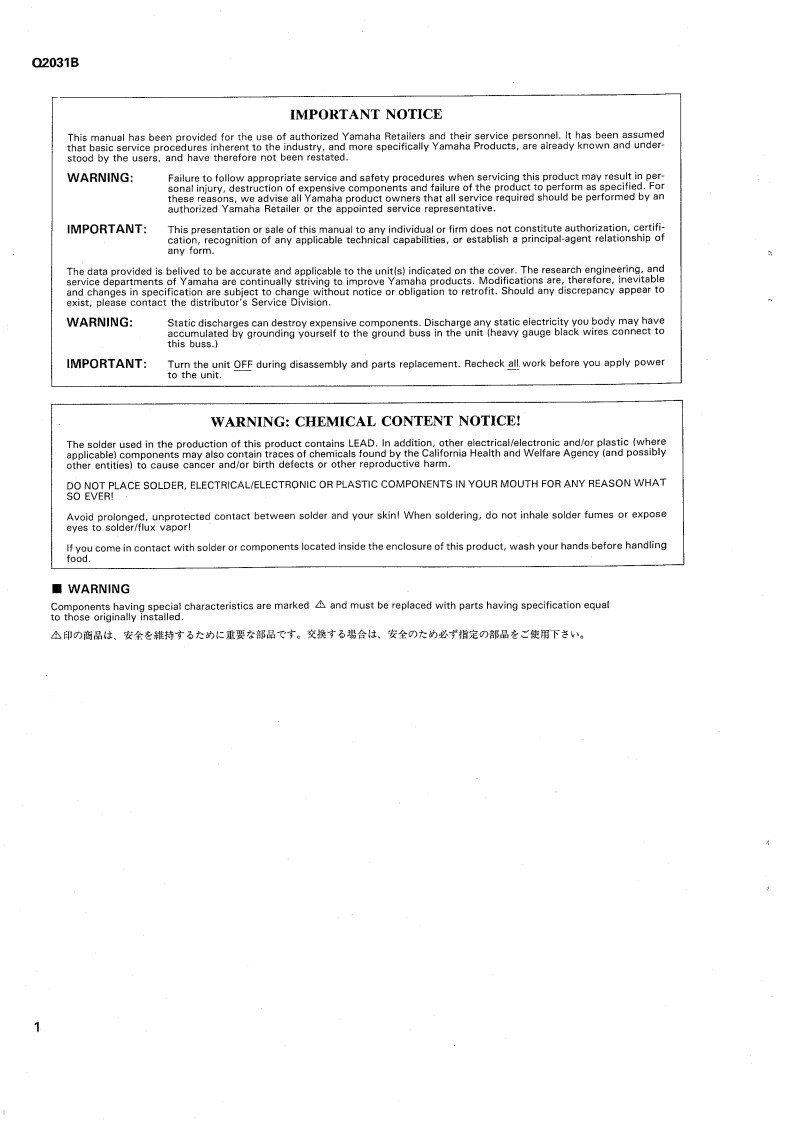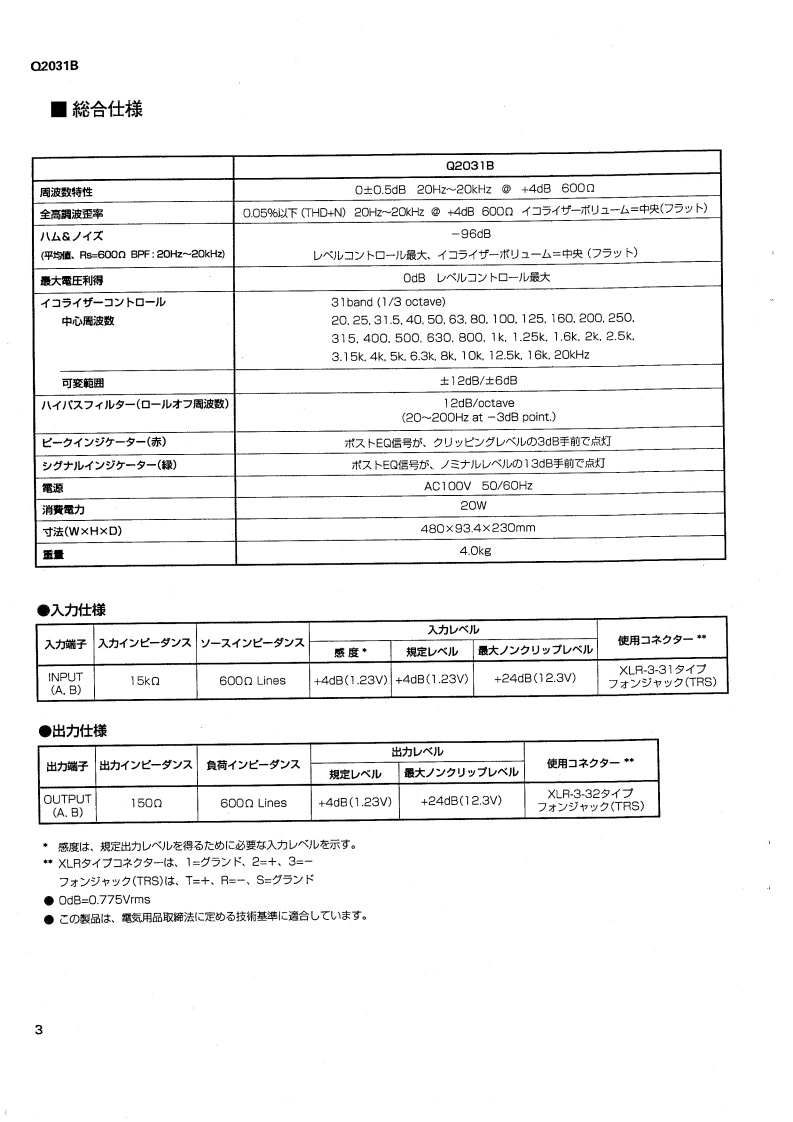 GRAPHIC EQUALIZER02031BSERVICE MANUAL■CONTENTS(目次)SPECIF1CAT1ONS(稀合仕樣)2PANEL LAYOUT(I礻儿亻T卜).4CIRCUIT BOARD LAYOUT (.....5DIMENSIONS(寸法☒)…IC BLOCK DIAGRAM (ICブ口y夕☒).6BLOCK DIAGRAM(J门y夕夕1T774)7DISASSEMBLY PROCEDURE(分解手順).CIRCUIT BOARDS(-卜基板☒).…12INSPECTIONS/ADJUSTMENTS(検查上調整).20PARTS LISTYAMAHA CORP.HAMAMATSU.JAPAN2.7K-342 Printed in Japan '96.3