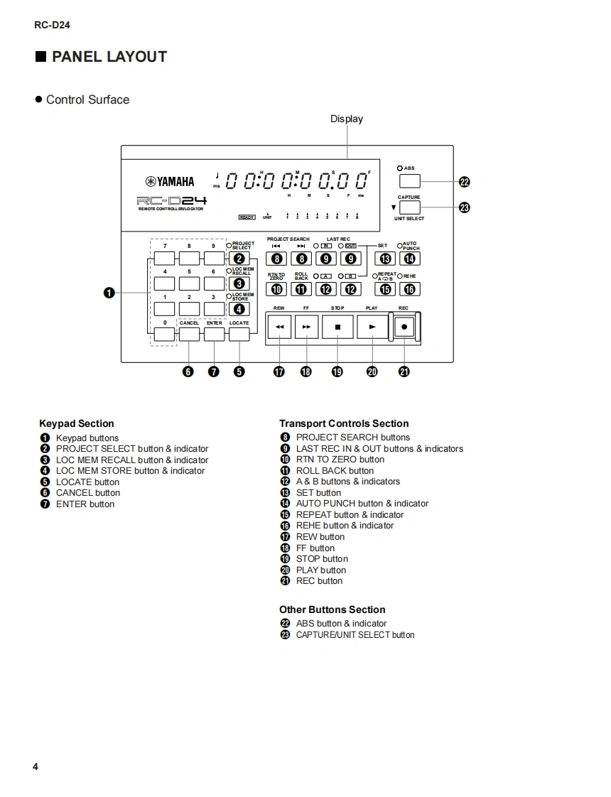 REMOTE CONTROLLER/LOCATOR灵二-口2十SERVICE MANUAL零YAMAHA.00029.1S5只出01800129150RC-D24■CONTENTSSPECIFICATIONS…3…PANEL LAYOUT…4…BLOCK DIAGRAM…6CIRCUIT BOARD LAYOUT.................................................DISASSEMBLY PROCEDURE…8…LSI PIN DESCRIPTION....................................9…IC BLOCK DIAGRAM…1…CIRCU T BOARDS…12…TEST PROGRAM…14PARTS LISTOVERALL CIRCUIT DIAGRAMPA0114582/2YAMAHAHAMAMATSU.JAPANPrinted in Japan 99.12