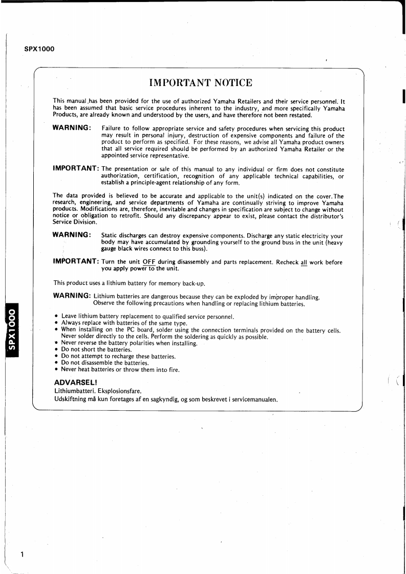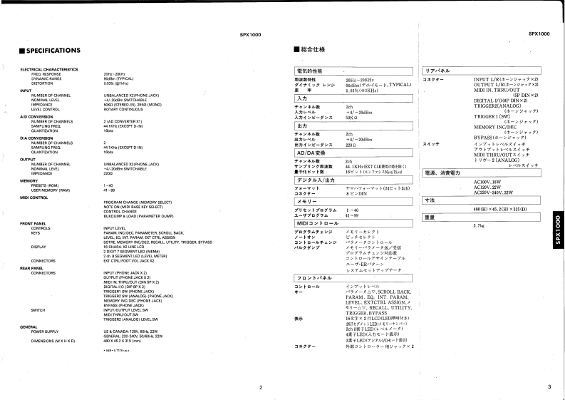 Professional Multi-Effect Processer雪×1D一一SERVICE MANUAL■CONTENTS(目次)SPECIFICATIONS(然合仕樣)…2CIRCUIT BOARD LAYOUT&VIRING(1二y卜レPヴ卜&桔線☒)4PANEL LAYOUT(儿了卜)…6BLOCK DIAGRAM(ブ口y夕岁亻了夕与么)…DIMENSIONS(寸法☒).…7LSI DATA TABLE(LSI端子機能表)…IC BLOCK DIAGRAM(ICブ口y夕☒)…12DISASSEMBLY PROCEDURE(分解手頒).15CHECKS&ADJUSTMENTS(検查之調整)…18/20MIDI DATA FORMAT(MID1子-夕7才-マy卜)…22/31DIGITAL I/0MODE(デ岁夕儿/0毛-ド)…37INPUT MODE(>ブy毛一ド)……38EFFECT MODE(工7工夕k毛-ド)…39MIDI IMPLEMENTATION CHART..................40CIRCUIT BOARDS(之一卜基板☒)…42TEST PROGRAM(子又卜ブ口夕ラ4)50PARTS LISTLMo06876YAMAHA CORP.HAMAMATSU.JAPAN2.85K-534 Printed in Japan 88.10