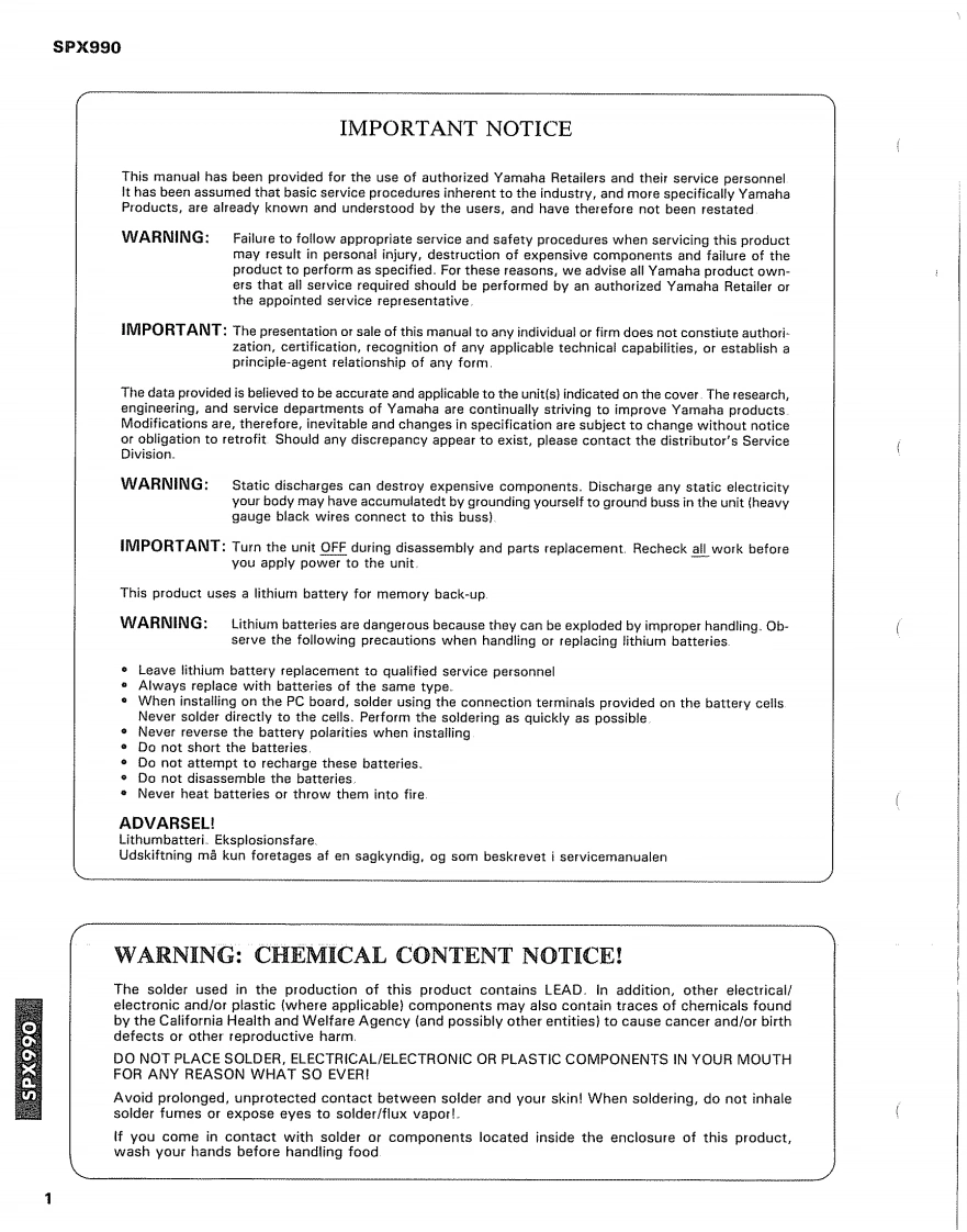 C sm 773Professional Multi-effect Processorte CrySERVICE MANUAL图CONTENTS(目次)SPECIFICAT1ONS(合仕横)…-……2/3PANEL LAYOUT(N*儿LF白k)4CIRCUIT BOARD LAYOUT(ユ二ykF户K)8BLOCK DIAGRAM(ブ口y夕岁1子夕ラㄙ)…6DIMENS引ONS(寸法☒)…9DISASSEMBLY PROCEDURE(分解手頫)…10LSI PIN DESCRIPTION(LSl端子機能表)….14IC BLOCK DIAGRAM(ICブ口y夕☒)…19CIRCUIT BOARDS(之一卜基板☒)20TEST PROGRAM(テ又Fブ口ヴラㄙ)26/30CHECKS&ADJUSTMENTS(换查铜整)34/35RAM INITIALIZE(RAM亻二之+ラ亻Z)-·-36ERROR MESSAGES(工ラ-×y乜-)36MID1 DATA F0RMAT(MIDi子-夕7才-マy卜)-37/42MIDI IMPLEMENTATION CHART47PRESET PROGRAM LIST...........488OPERATION MAP.…50PARTS LISTYAMAHA CORP.LM011149HAMAMATSU.JAPAN19930310-9900028K-944 Printed in Japan '93.3