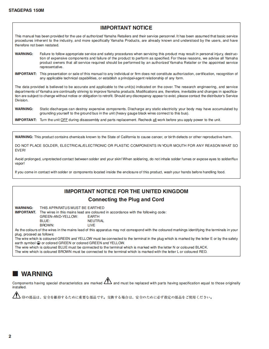 PORTABLE PA SYSTEMSTAGEPAS 150MSERVICE MANUALSpeakerMixer■CONTENTS(目次)SPECIFICATIONS(稔合仕樣).3PANEL LAYOUT(/パ礻儿亻T7卜)..4DIMENS引ONS(付法☒).4CIRCUIT BOARD LAYOUT(1二y卜レ亻TヴK)5DISASSEMBLY PROCEDURES(分解手順).6IC BLOCK DIAGRAM(ICブ口y夕☒).15CIRCUIT BOARDS(y一卜基板☒).…16NSPECTIONS(検查)...27ADJUSTMENT OF AMPLIFIER(T>ブ1二y卜D調整)..29PARTS LISTBLOCK&LEVEL DIAGRAM(ブ口y夕&L入儿ダT月ラ4)CIRCUIT DIAGRAM(回路☒)PA011900YAMAHA20080527-65100HAMAMATSU,JAPANCopyright (c)Yamaha Corporation.All rights reserved.M LPo08.05