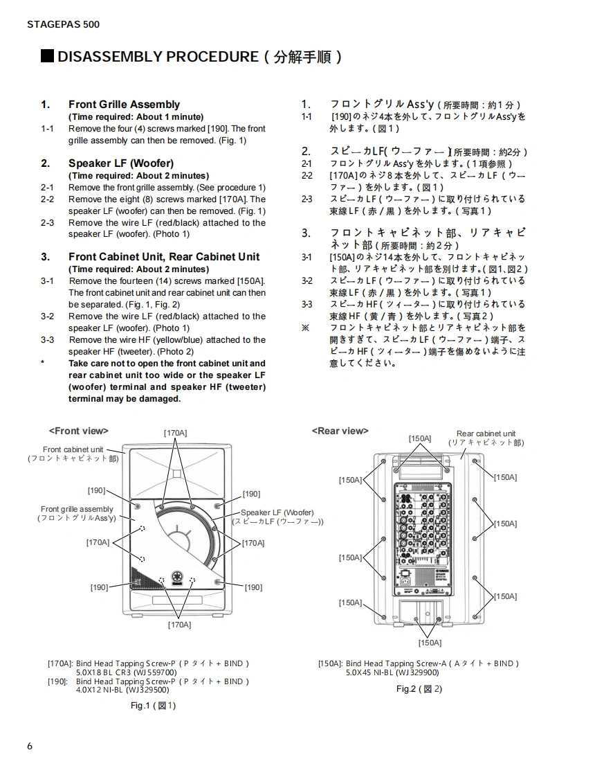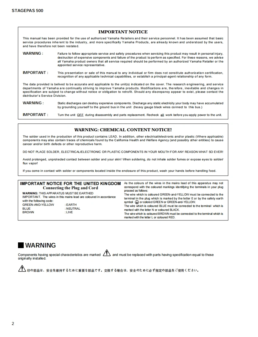 PORTABLE PA SYSTEMSTAGEPAS 500SERVICE MANUALSpeakerMixerSpeaker■CONTENTS(目次)SPECIFICATIONS(総合仕樣).3PANEL LAYOUT(パ礻儿了ヴ卜)¥DIMENSIONS(寸法☒)×CIRCUIT BOARD LAYOUT(1二Y卜亻了ヴ卜)6DISASSEMBLY PROCEDURE(分解手順)6LSI PIN DESCRIPTION(LSI端子機能表)16IC BLOCK DIAGRAM(ICブ口y夕☒)…CIRCUIT BOARDS(一卜基板☒)19INSPECTIONS(梭查)27ADJUSTMENT OF AMPLIFIER UNIT(了yブ1二ッ卜0調整)3FACTORY SETTING(出荷時O設定)...0TROUBLE SHOOTING(K与ブ九1-テ1>分).31PARTS LISTBLOCK DIAGRAM(ブ口ッ夕ダ了ヴラㄙ)CIRCUIT DIAGRAM(回路☒)PA011840YAMAHA200612.155400HAMAMATSU,JAPANCopyright (c)Yamaha Corporation.All rights reserved.PDFM'07.01
