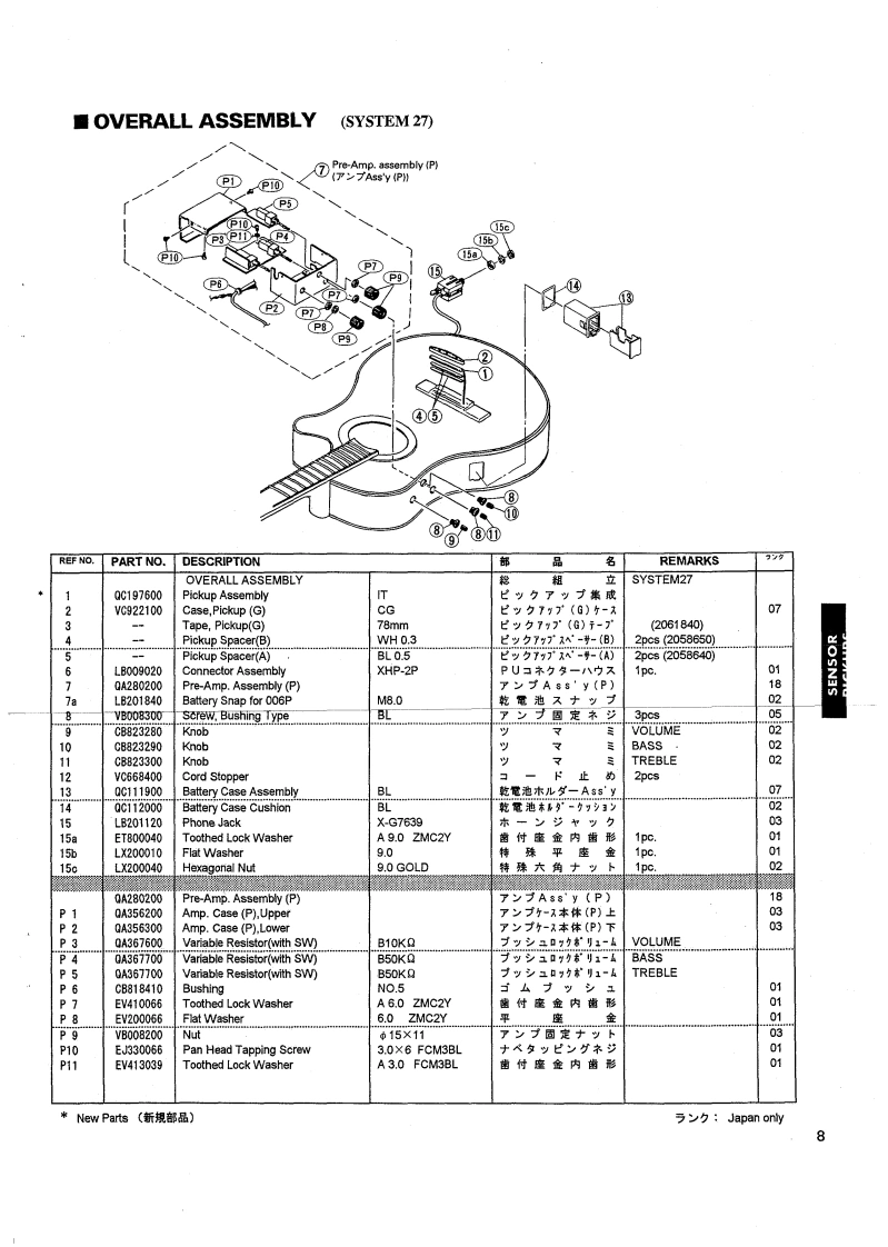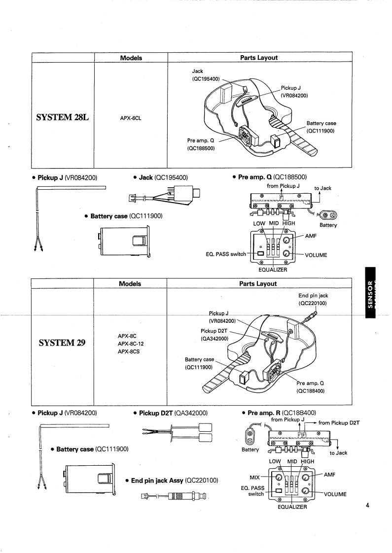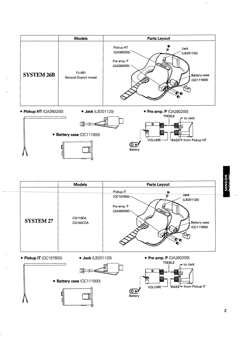 ELECTRIC ACOUSTIC GUITARSENSOR PICKUPSSERVICE MANUALSYSTEM 19SYSTEM 26BSYSTEM 27SYSTEM 28ASYSTEM 28BSYSTEM 28LSYSTEM 29CG150 CCAAPX-7CSYSTEMMODELSSystem 19LD-10ESystem 26BFJ-681System 27CG110EA,CG150CCASystem 28AAPX-6C,APX-6CS,APX-7CSystem 28BAPX-7CN,APX-7CTSystem 28LAPX-6CLSystem 29APX-8C,APX-8C-12,APX-8CSYAMAHA CORPGD011226HAMAMATSU.JAPAN1.45K-382 Printed in Japan '94.03