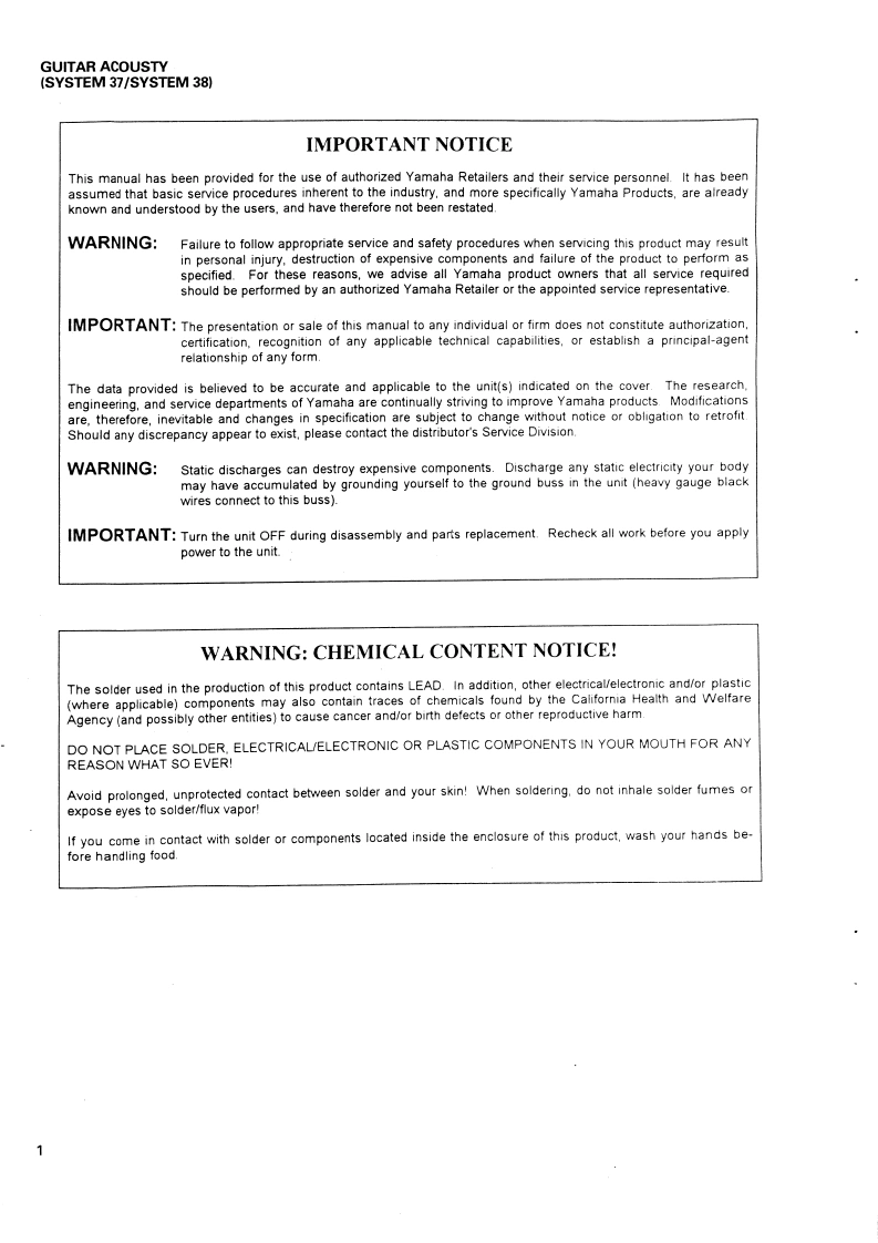 ELECTRIC ACOUSTIC GUITARGuiter AcoustyEXTERNAL PRE-AMPSERVICE MANUALSYSTEM 37SYSTEM 38YAMAHAuitar花oruu花u4E AUPEXTERNN PHE-AMPExternal Pre-amp e fcry (1 WAY)External Pre-amp Gte eeary (2 WAY)·外部了>寸ku4(1WAY门●外部了寸awka鸣(2WAY门SYSTEMExport ModelJapanese ModelSystem 37DW-103EDW-4SESystem 38LL-11ELL-11BEYAMAHA CORPGD011303HAMAMATSU.JAPAN1.4K-332 Printed in Jspan '95.12