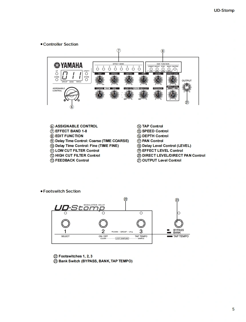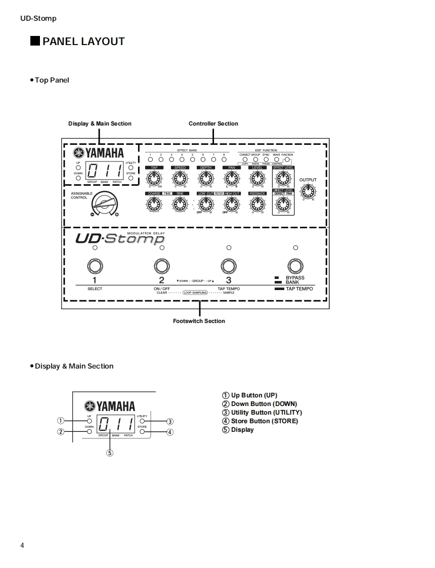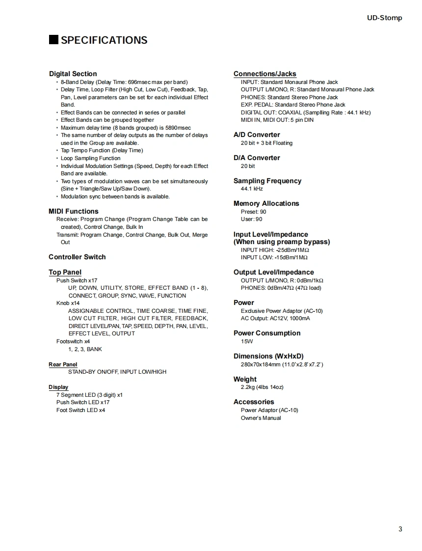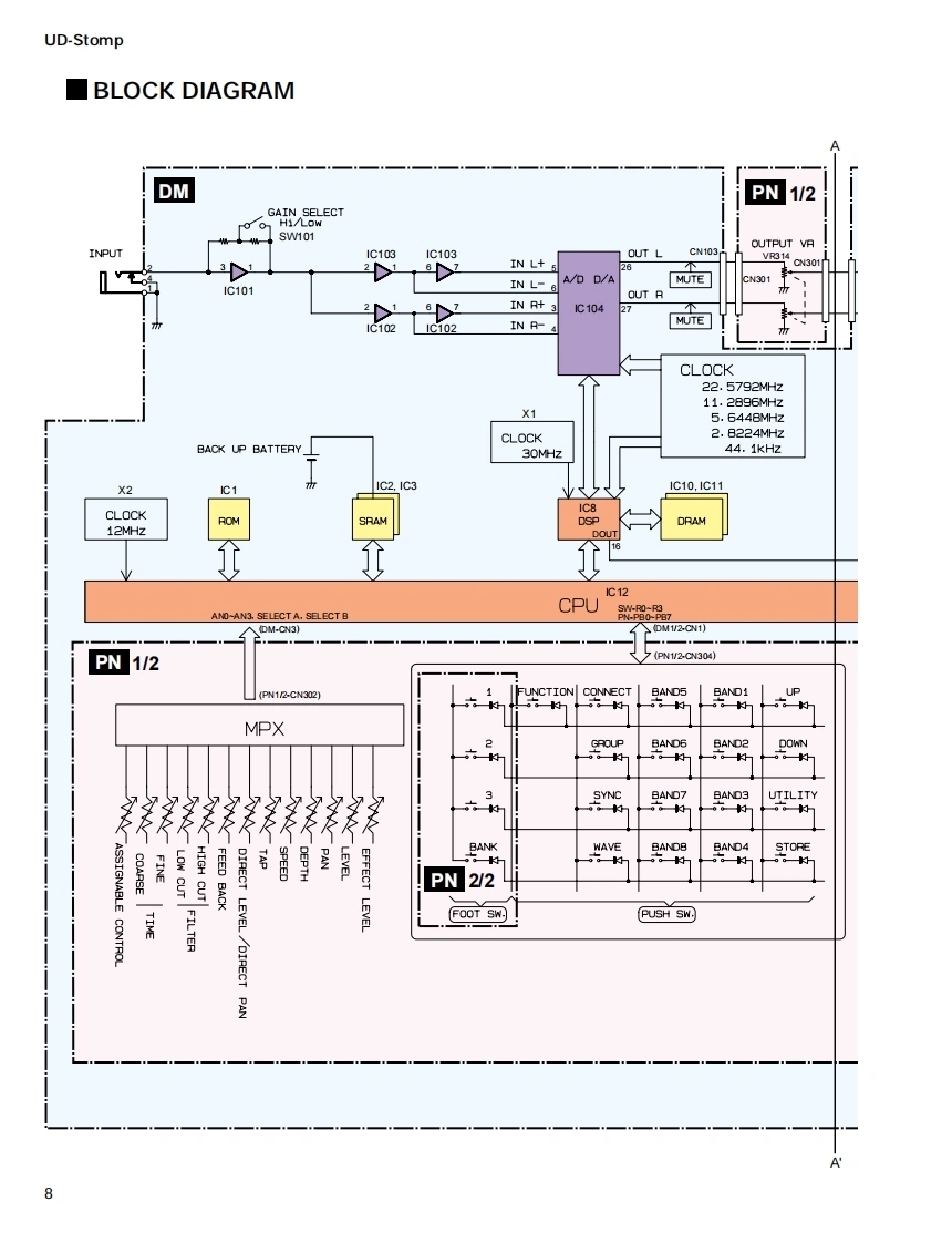 MODULATION DELAYUDStompSERVICE MANUAL零YAMAHALU▣-sto0二9TAP TEMPO■CONTENTSSPECIFICATIONS3PANEL LAYOUTCIRCUIT BOARD LAYOUT6WIRING...BLOCK DIAGRAM.....8DISASSEMBLY PROCEDURE10LSIPIN DESCRIPTION.........1IC BLOCK DIAGRAM…6CIRCUIT BOARDS18TEST PROGRAMERROR MESSAGES28MIDI IMPLEMENTATION CHART29PARTS LISTThis document is prnted on chlorhe fee (ECF)paper with soy inkOVERALL CIRCUIT DIAGRAMYAMAHAGA011631HAMAMATSU,JAPAN1.338K-476 FTPrinted in Japan 2002.3
