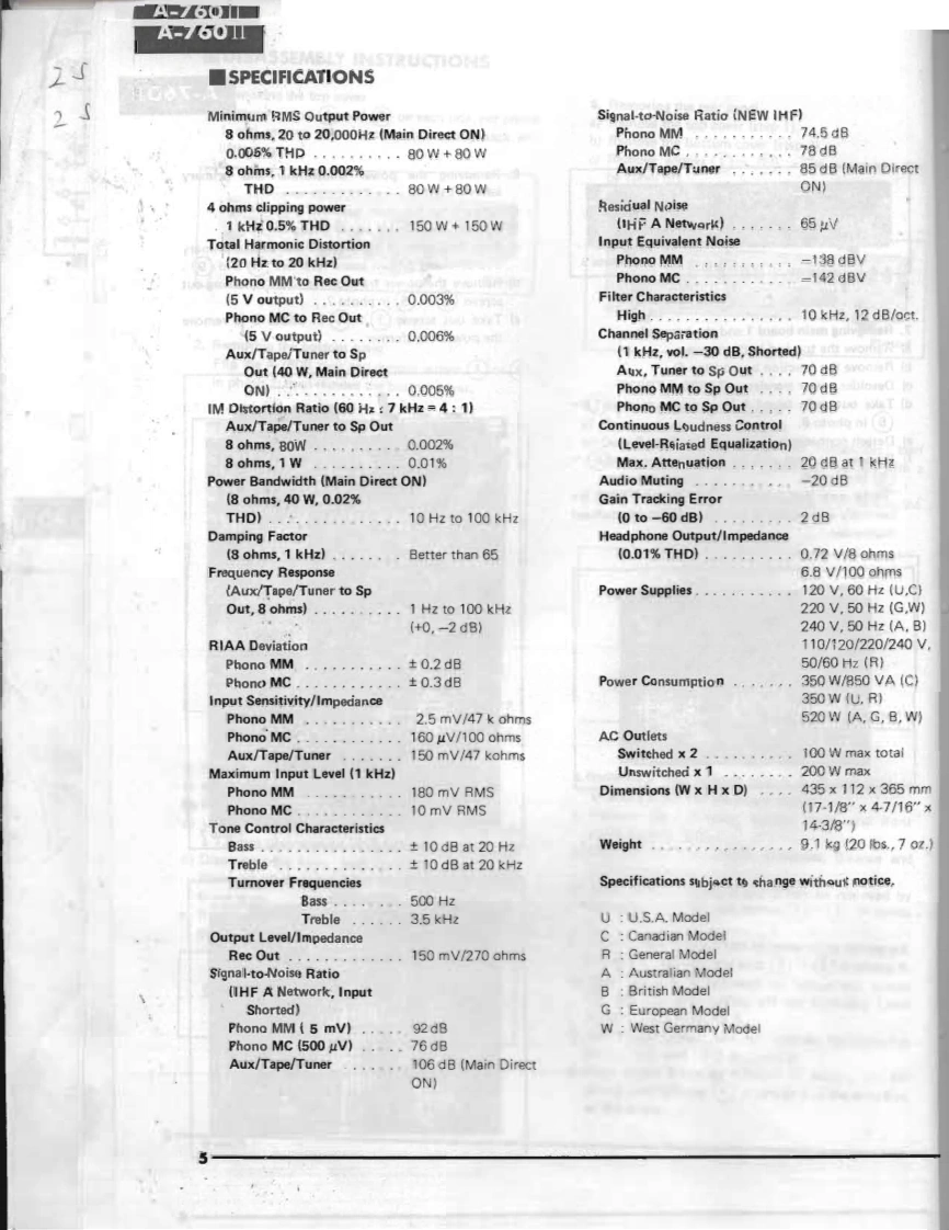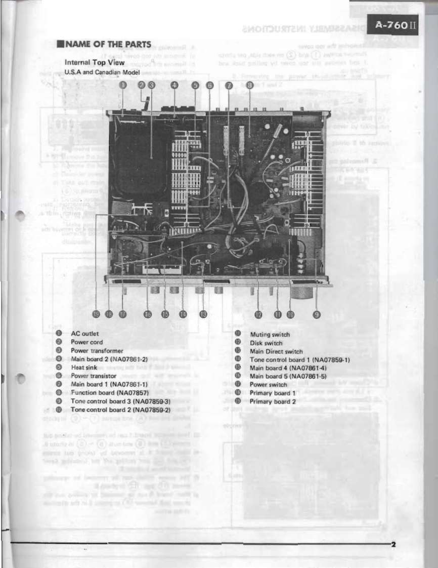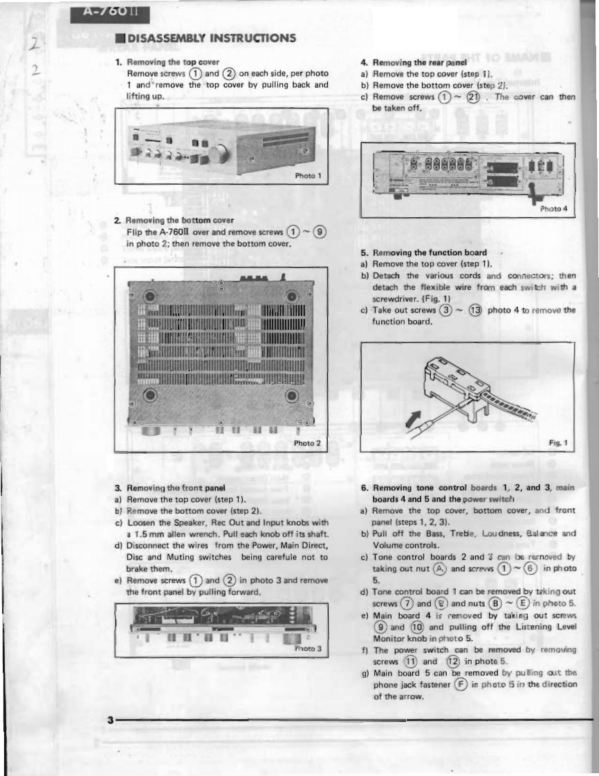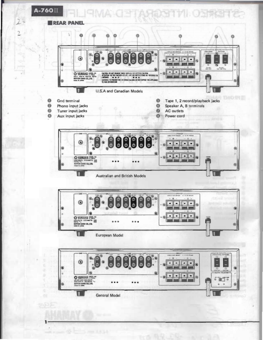 STEREO INTEGRATED AMPLIFIER39A-760可E PARTSSERVICE MANUAL■FRONT PANELT。交0师0平币Power SwitchTreble Control0Listening Level Monitor0High FilterMain Direct SwitchLoudness Control0Disc Switch图Balance Control6Muting SwitchMode Control0Volume ControlePhono Selector0Speaker SwitchRec Out Selector0Phones JackInput SelectorgBass Control■CONTENTSRear panel,·…·1Names of the Parts.,....,,...........,..2Disassembly Instructions,.,.·…··3Specifications,·,...。·。.·····,···,···5Adjustmen,,,,·····6Block Diagram.,··7Printed Circuit Layout.....······7Printed Circuit Board/Wiring...,··,·tComplete Circuit Diagram.......。,,.,,·10394SINCE 1887象YAMAHA004458NIPPON GAKKI CO..LTD.HAMAMATSU.JAPAN82.3.2.65K