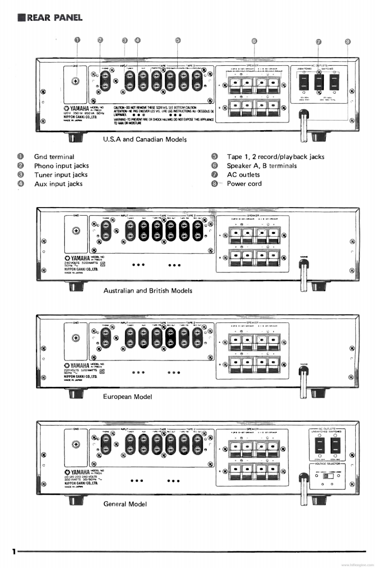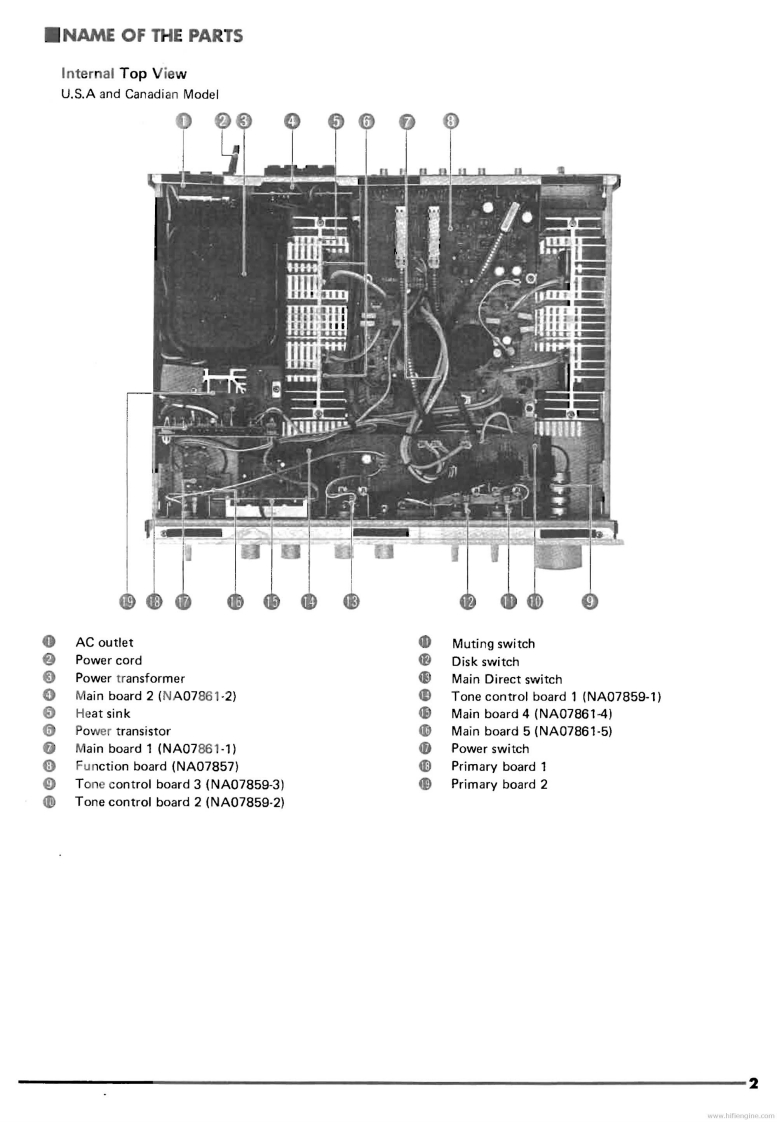 STEREO INTEGRATED AMPLIFIERǜ○SERVICE MANUAL■FRONT PANELQT。交石交平前行0Power Switch0Treble ControlListening Level Monitor0High Filter0Main Direct SwitchLoudness Control0Disc Switch的Balance ControlMuting Switch0Mode Control6Volume ControlBPhono Selector0Speaker Switch6Rec Out SelectorPhones Jack0Input SelectorgBass Control■CONTENTSRear panel.·······Names of the Parts,·,::::::::,:。。,,···2Di5a55 embly Instruction5,,,,...,,,..,..,,.,,,,,,,,,,,,,,···,·,,,,,。·,,3Specifications,,,,,,,,,,,,,·.:,,,,,,,。5Adjustmentsg。”。。。。4…。。。。。g。。g。。””g””。。。””4,”4””4”。0””¥”””””40””””””””49””Block Diagram,…7Printed Circuit Layout......,:···,····················Printed Circuit Board/,Wiring.,.,············Complete Circuit Diagram .............................10SINCE 1887YAMAHA004458NIPPON GAKKI CO..LTD.HAMAMATSU.JAPAN82.32.65Kprinted in Japan