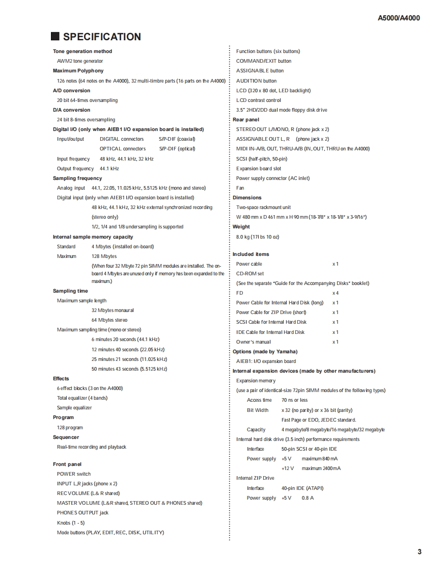 PROFESSIONAL SAMPLER△马▣▣▣1△+▣口口SERVICE MANUAL■CONTENTSSPECIFICATIONS.3PANEL LAYOUT.4CIRCUIT BOARDLAYOUT5BLOCKDIAGRAM.6DISASSEMBLY PROCEDURE.7LSIPIN DESCRIPTION10IC BLOCK DIAGRAM..............16TEST PROGRAM.........19ERROR MASSAGE3MIDI DATA FORMAT..........32MIDI IMPLEMENTATION CHART.43PARTS LISTOVERALL CIRCUIT DIAGRAMCIRCUIT BOARDS米YAMAHASY011491HAMAMATSU.JAPANA500019991210-229000A400019991210-1490001.57K-859(1 Printed in Japan2000.01
