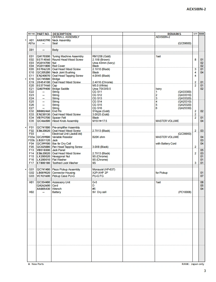 雅马哈Yamaha_AEX500N-2_Service_Manual维修手册含电器原理图找手册网23天前发布关注私信0.35MB8页049雅马哈Yamaha_AEX500N-2_Service_Manual维修手册含电器原理图此内容为付费资源,请付费后查看¥19¥21黄金会员免费钻石会员免费登录购买付费资源 第1页 / 共8页 第2页 / 共8页 第3页 / 共8页 第4页 / 共8页 第5页 / 共8页 第6页 / 共8页 第7页 / 共8页 第8页 / 共8页 已完成全部阅读,共8页 THE END雅马哈 文本预览 ELECTRIC GUITARAEX500N-2SERVICE MANUALAEX500N-2(NT)■CONTENTSOVERALL ASSEMBLY2AMPLIFIER ASSEMBLYELECTRICAL PARTSCIRCUIT BOARD6CIRCUIT DIAGRAMWIRINGSPECIFICATIONS8EG011657YAMAHAHAMAMATSU.JAPANCopyright(c)Yamaha Corporation.All rights reserved.PDF-K501 FT:'02.11 查看更多 收起部分 喜欢就支持一下吧收藏