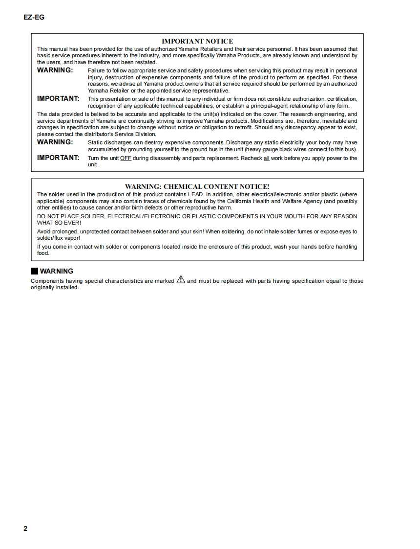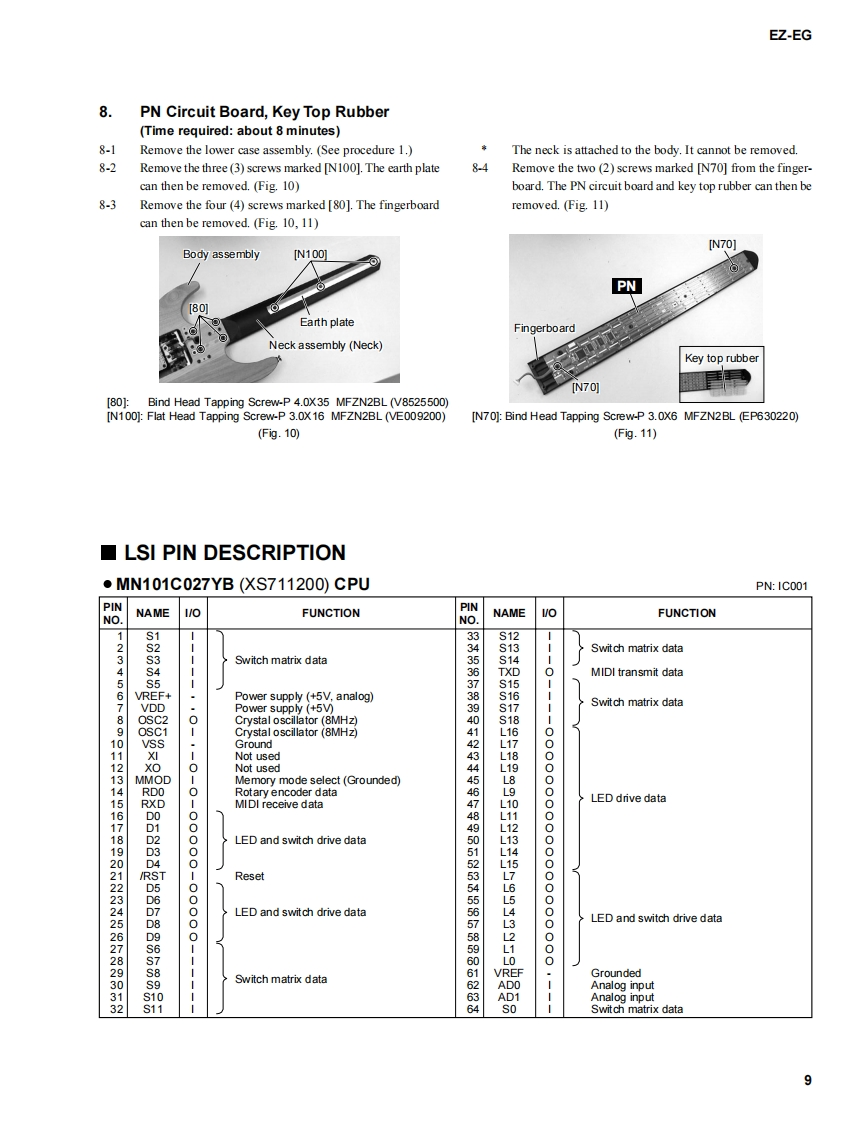 Easy GuitarSERVICE MANUAL■CONTENTSSPECIFICATIONS…3PANEL LAYOUT…4…CIRCU|T BOARD LAYOUT…5…BLOCK DIAGRAM…6…DISASSEMBLY PROCEDURE…7…LSI PIN DESCRIPTION…9…IC BLOCK DIAGRAM…1…CIRCUIT BOARDS……12TEST PROGRAM…16…NSPECTIONS…8MIDI IMPLEMENTATION CHART....................................19PARTS LISTOVERALL CIRCUIT DIAGRAMPK011675YAMAHAHAMAMATSU.JAPANCopyright(c)Yamaha Corporation.All rights reserved.PDF-K724 M03.02