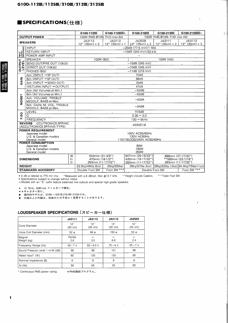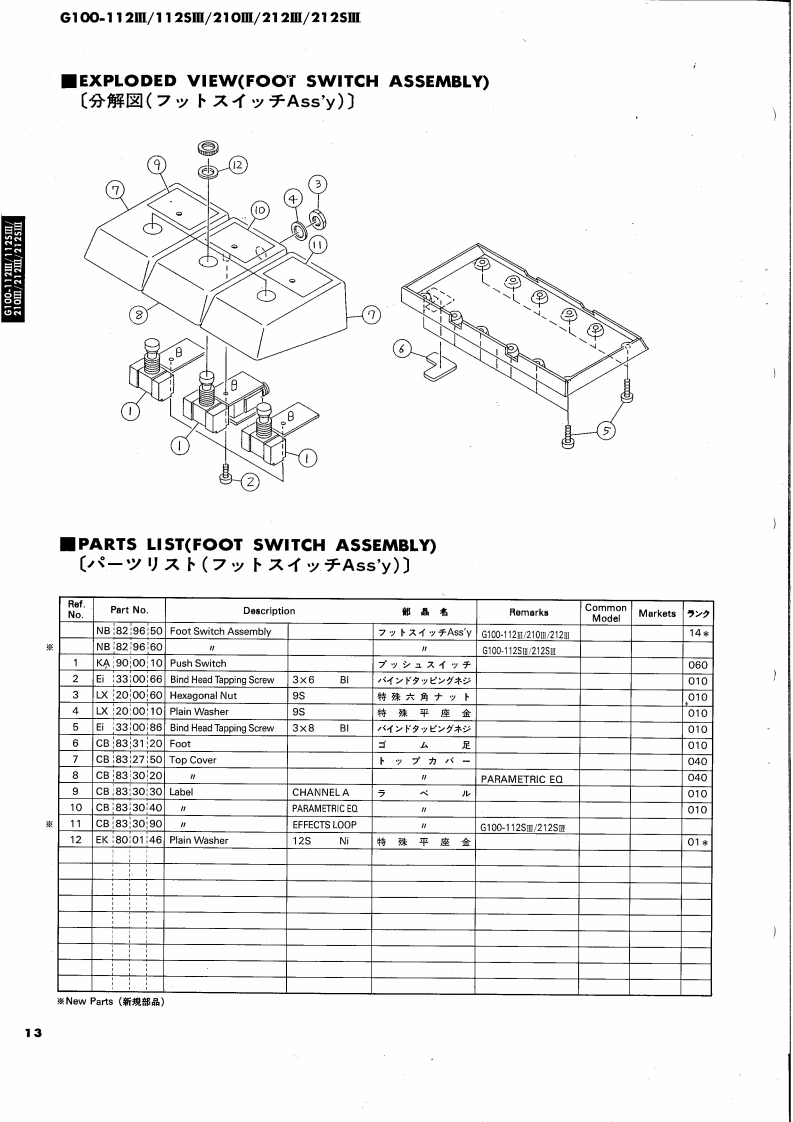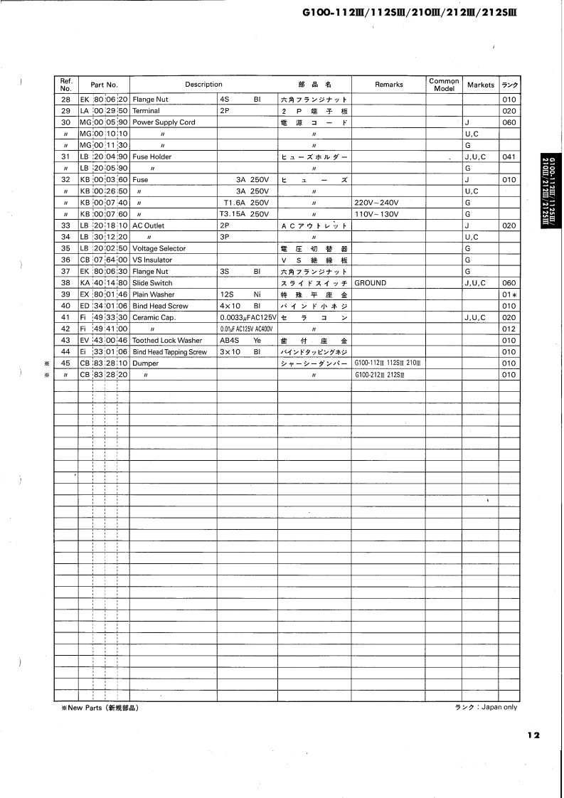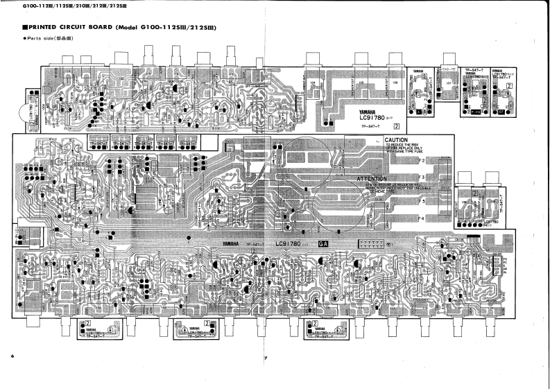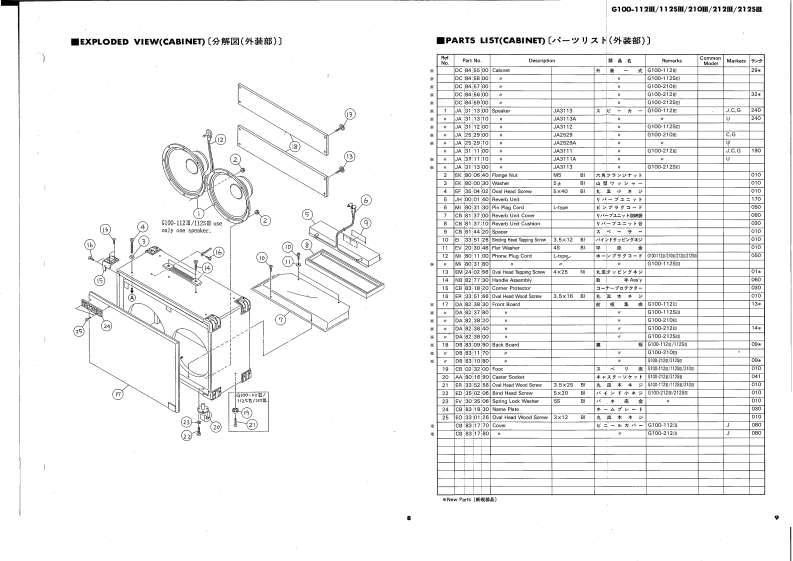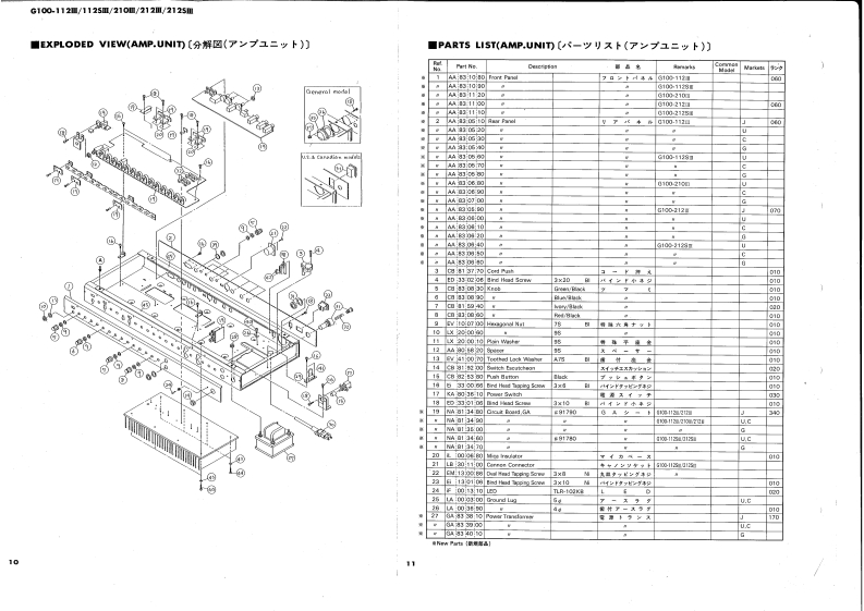 GUITAR AMPLIFIERG100-112Ⅲ/112SⅢ/210Ⅲ/212Ⅲ/212SⅢExcept U.S.SERVICE MANUAL8685w兽85,,500·思部YAMAHAYAMAHAG100-1121G100-212Ⅲ■CONTENTS(目次)SPECIFICATIONS(仕横).····PARTS LIST (AMP.UNIT)FRONT PANEL.:,···2-ッyx(7>ブ1=y)力…11/12EXPLODED VIEW(FOOT SW ASSEMBLY).....13GENERAL ADJUSTMENT2〔分解☒(7y下又亻y于Ass'y)〕调整3PARTS LIST (FOOT SW ASSEMBLY)13PRINTED CIRCUIT BOARD.47〔-y)又卜(7y卜又才y于Ass'y)〕EXPLODED VIEW (CABINET)8PARTS LIST (ELECTRICITY)〔分解区(外装部)〕〔-y刂又卜(電氣部)】......14/15PARTS LIST (CABINET)9SCHEMATIC DIAGRAM(然回路☒).··.··,,·16〔一以刂又卜(外装部))EXPLODED VIEW (AMP.UNIT)10〔分解☒(了>ブ1=ッ卜))SINCE 1887006593YAMAHANIPPON GAKKI CO.,LTD.HAMAMATSU,JAPAN84.4 1.8K-292Printed in Japan