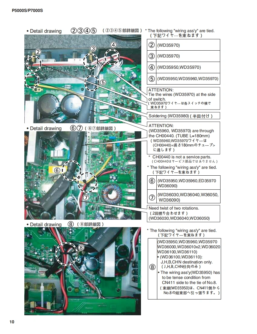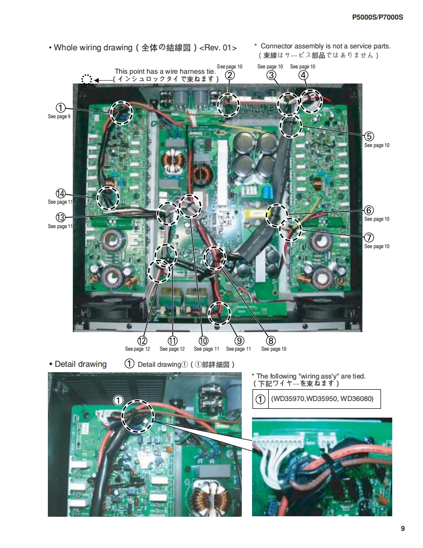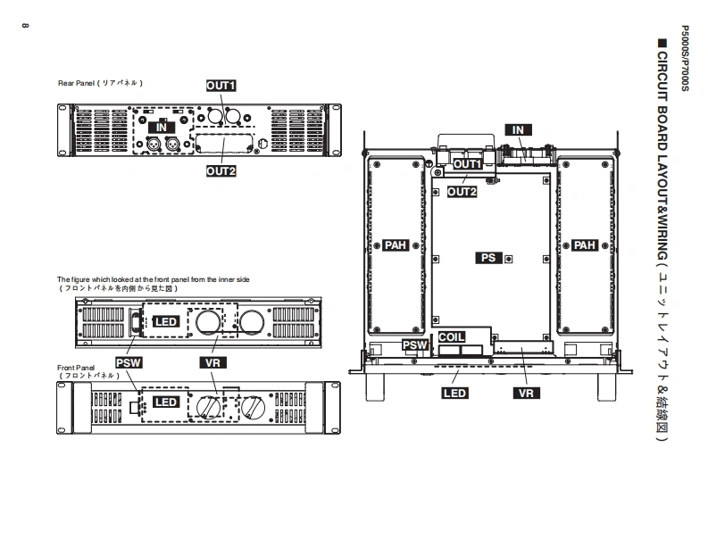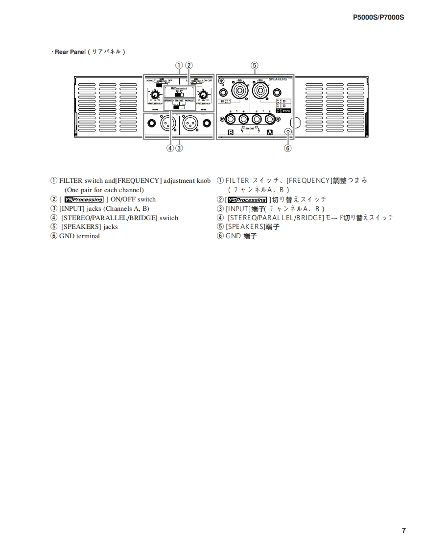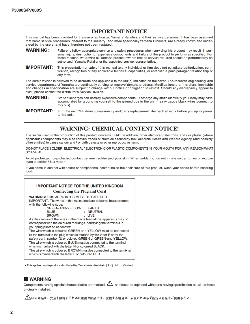 POWER AMPLIFIERP5000S/P7000SSERVICE MANUALP5000SP7000SA manufacture number should use thisThe service manual of PA011698 should be used formanual with goods of 9 or more figures.the goods whose manufacture number is 7 figures.(本マ二1了儿住、製造番号9桁以上の(製造番号7桁の商品体。PA011698の竹一E商品℃C使用〈ě。?二了儿卷C使用(龙ě。The example of a manufacture numberThe example of a manufacture number(製造番号例)(製造番号例)UCCKX01001KL010019-11 figures7 figures(9w11桁】(7桁)■CONTENTS(目次)SPECIFICATIONS(然合仕樣).3/4DIMENSIONS(寸法☒).5PERFORMANCE GRAPHS(特性☒).5PANEL LAYOUT(バ礻儿〈了ヴ卜)..6CIRCUIT BOARD LAYOUT&WIRING(1二y卜上亻了ヴ卜&結線☒).…8DISASSEMBLY PROCEDURE(分解手順).14IC BLOCK DIAGRAM(ICブ口y夕☒)21CIRCUIT BOARDS(之-卜基板☒)22INSPECTION(検查)35/43PARTS LISTBLOCK DIAGRAM(ブ口y夕ダ亻了分ラ4)NIR ING(基板結線囡)OVERALL CIRCUIT DIAGRAM(然回路☒)PA011756米YAMAHAP5000S:200410-162750P7000S:200410-194250HAMAMATSU.JAPANCopyright(c)Yamaha Corporation.All rights reserved.PDF-K765 NI 04.11