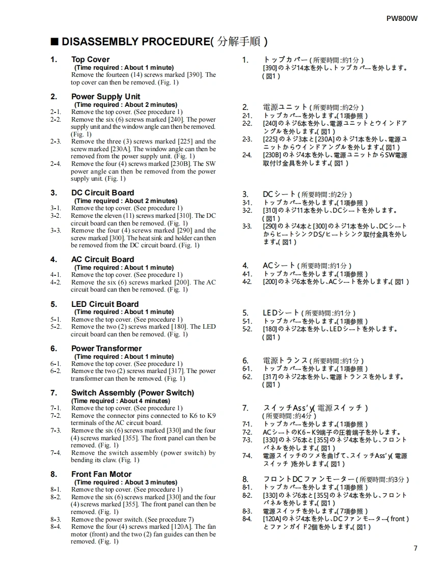 POWER SUPPLYPW800WSERVICE MANUAL米YAMAHA■CONTENTS(目次)SPECIF1 CATIONS(然合仕樣)3PANEL LAYOUT(パ礻儿亻了7卜)DIMENSIONS(寸法☒..CIRCUIT BOARD LAYOUT(1二y卜亻了7卜).6DISASSEMBLY PROCEDURE(分解手順....>CIRCUIT BOARDS(一卜基板☒)......10PARTS LISTOVERALL CONNECTOR CIRCUIT DIAGRAM(総口礻夕夕接続回路國)OVERALL CIRCUIT DIAGRAM(回路☒)PA011740YAMAHA200408才-寸>1ラ1ㄡHAMAMATSU,JAPANCopyright (c)Yamaha Corporation.All rights reserved.FT:'04.09