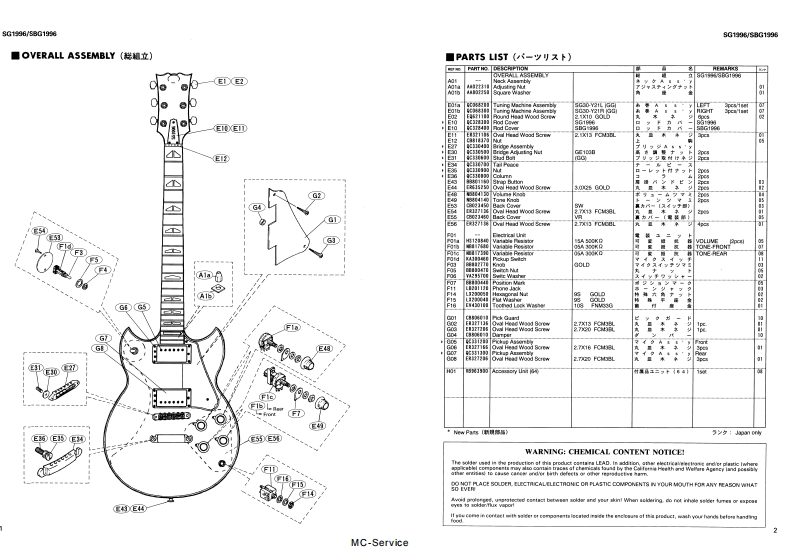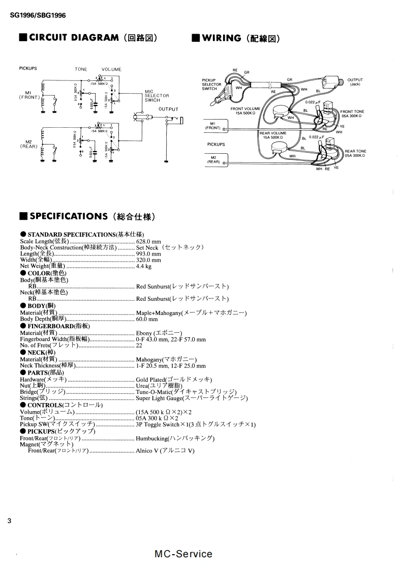 雅马哈Yamaha_SG1996-_SBG1996_Guitar_Service_Manual维修手册含电器原理图找手册网23天前发布关注私信0.40MB3页037雅马哈Yamaha_SG1996-_SBG1996_Guitar_Service_Manual维修手册含电器原理图此内容为付费资源,请付费后查看¥19¥21黄金会员免费钻石会员免费登录购买付费资源 第1页 / 共3页 第2页 / 共3页 第3页 / 共3页 已完成全部阅读,共3页 THE END雅马哈 文本预览 ELECTRIC GUITARSG1996/SBG1996SERVICE MANUALSG1996SBG1996■CONTENTS(目次)OVERALL ASSEMBLY(然組立).1PARTS LIST(UY-y)又卜).,.2CIRCUIT DIAGRAM(回路☒)..3NIRING(配線☒).3SPECIFICATIONS(然合仕樣).3YAMAHA CORP.EG011313HAMAMATSU.JAPAN0.85K-96 Printed in Japan '96.2MC-Service 查看更多 收起部分 喜欢就支持一下吧收藏