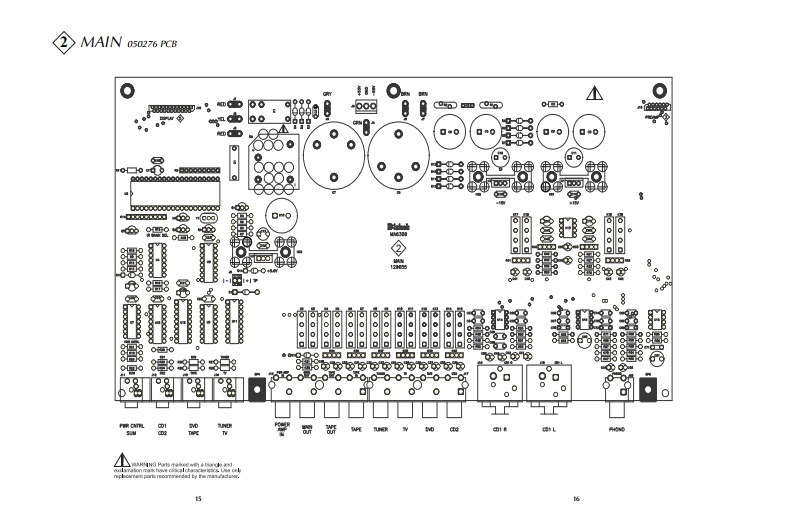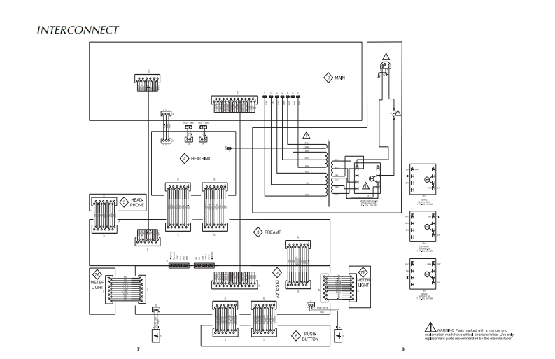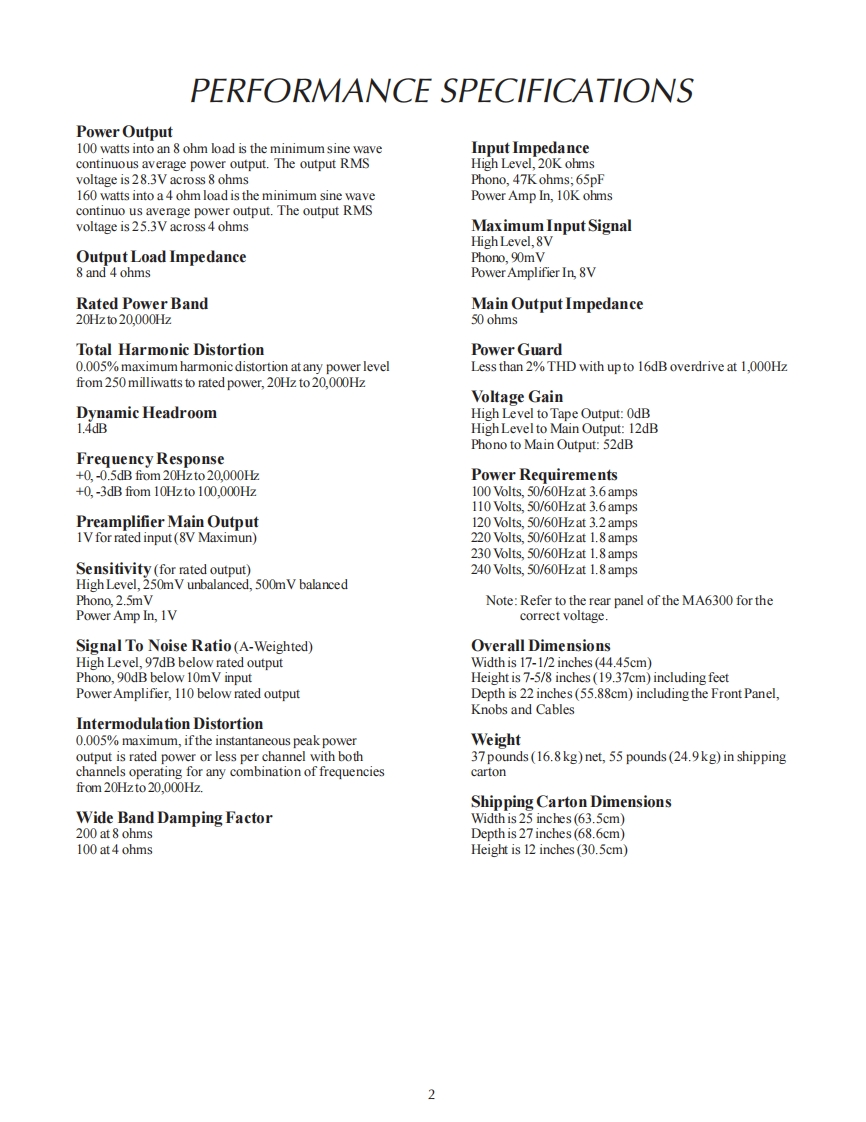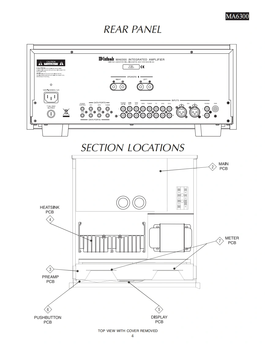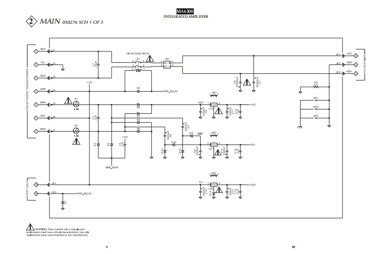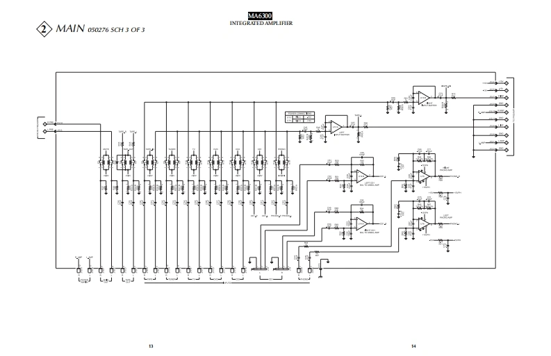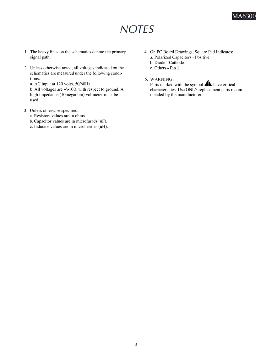 MA6300INTEGRATED AMPLIFIERSERIAL NO.WR1001 And AbovePOWER GLARD01101010100m品品01101910100m220202020072202020200POWER dUTPUTOPOWER CUTPUTMtInfoshMA63▣0INTEGRATED AMPLIFIERCONTENTSPerformance Specifications..Preamp Schematic and PCB1.20Heatsink Schematic and PCB21-28Rear Panel...Display Schematic and PCB29-32Section LocationPush Button Schematic and PCB.......33-34Block Diagram5-6Meter Schematic and PCB35-36Interconnection Diagram ........7-8Parts List...37.42Main Schematic and PCB9.16Repacking Instruction ...43SERVICE MANUAL
