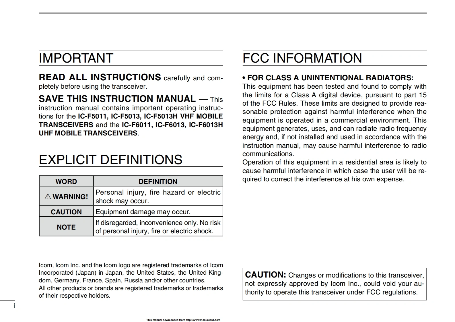 Icom-IC-F6011-Manual操作说明书手册找手册网22天前发布关注私信1.06MB24页031Icom-IC-F6011-Manual操作说明书手册此内容为付费资源,请付费后查看¥19¥21黄金会员免费钻石会员免费登录购买付费资源 第1页 / 共24页 第2页 / 共24页 第3页 / 共24页 第4页 / 共24页 第5页 / 共24页 第6页 / 共24页 第7页 / 共24页 第8页 / 共24页 第9页 / 共24页 第10页 / 共24页 试读已结束,还剩14页,您可下载完整版后进行离线阅读 THE END艾可慕 文本预览 COMMDC 1200CompatibleLimited functions onlyINSTRUCTION MANUALVHF MOBILE TRANSCEIVERSIC-F50101■234Series●TX/RX000UHF MOBILE TRANSCEIVERSIC-F6010POP1P2P3SeriesIcom Inc.manual downloaded from http://www.manualowl.com 查看更多 收起部分 喜欢就支持一下吧收藏