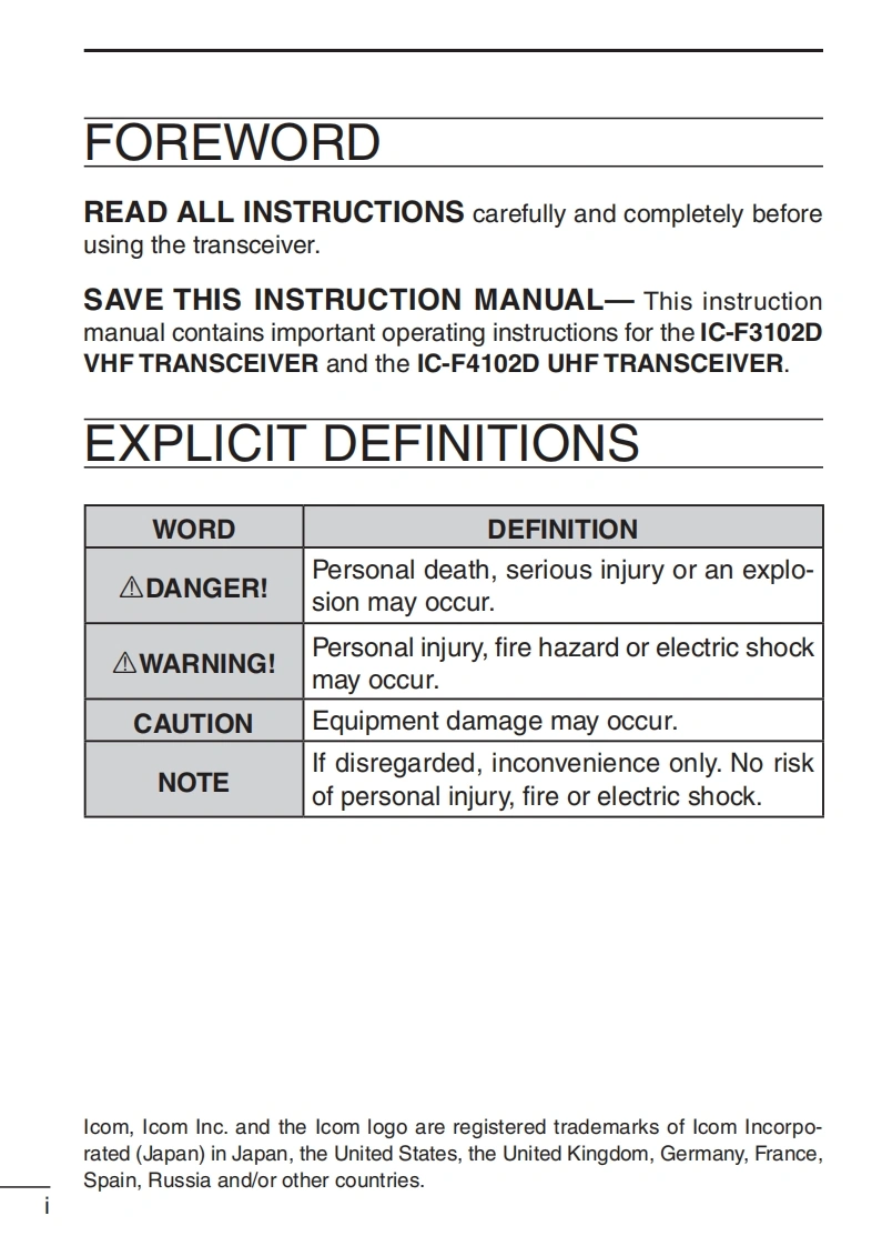 Icom_IC-F3102D_F4102D_manual_en找手册网23天前发布关注私信2.21MB62页030Icom_IC-F3102D_F4102D_manual_en此内容为付费资源,请付费后查看¥19¥21黄金会员免费钻石会员免费登录购买付费资源 第1页 / 共62页 第2页 / 共62页 第3页 / 共62页 第4页 / 共62页 第5页 / 共62页 第6页 / 共62页 第7页 / 共62页 第8页 / 共62页 第9页 / 共62页 第10页 / 共62页 试读已结束,还剩52页,您可下载完整版后进行离线阅读 THE END艾可慕 文本预览 COMMDC 1200CompatibleLimited functions only▣a三ICOM DIGITAL ADVANCED SYSTEMLimited functions onlyINSTRUCTION MANUALVHF TRANSCEIVER1C-F3102DUHF TRANSCEIVER1C-F4102DCOMThe photo showsIcom Inc.the VHF transceiver. 查看更多 收起部分 喜欢就支持一下吧收藏